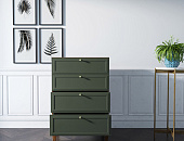 Особенности: дверцы и ящики оснащены доводчиками и латунными ручками.