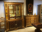 Мебель для гостиной Софи выполнена в стиле арт-деко из натурального массива березы, который эффектно сочетает на себе два вида отделки. Формы мебельных предметов – это свойственные стилю прямые и ломаные линии, четкость и графичность декора.
