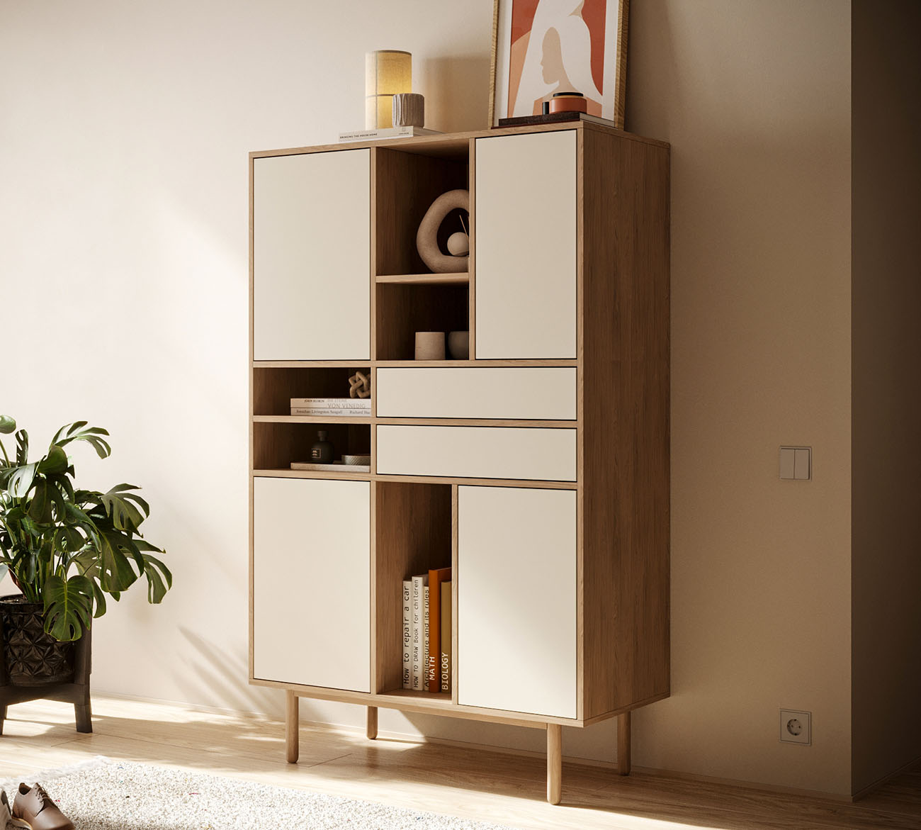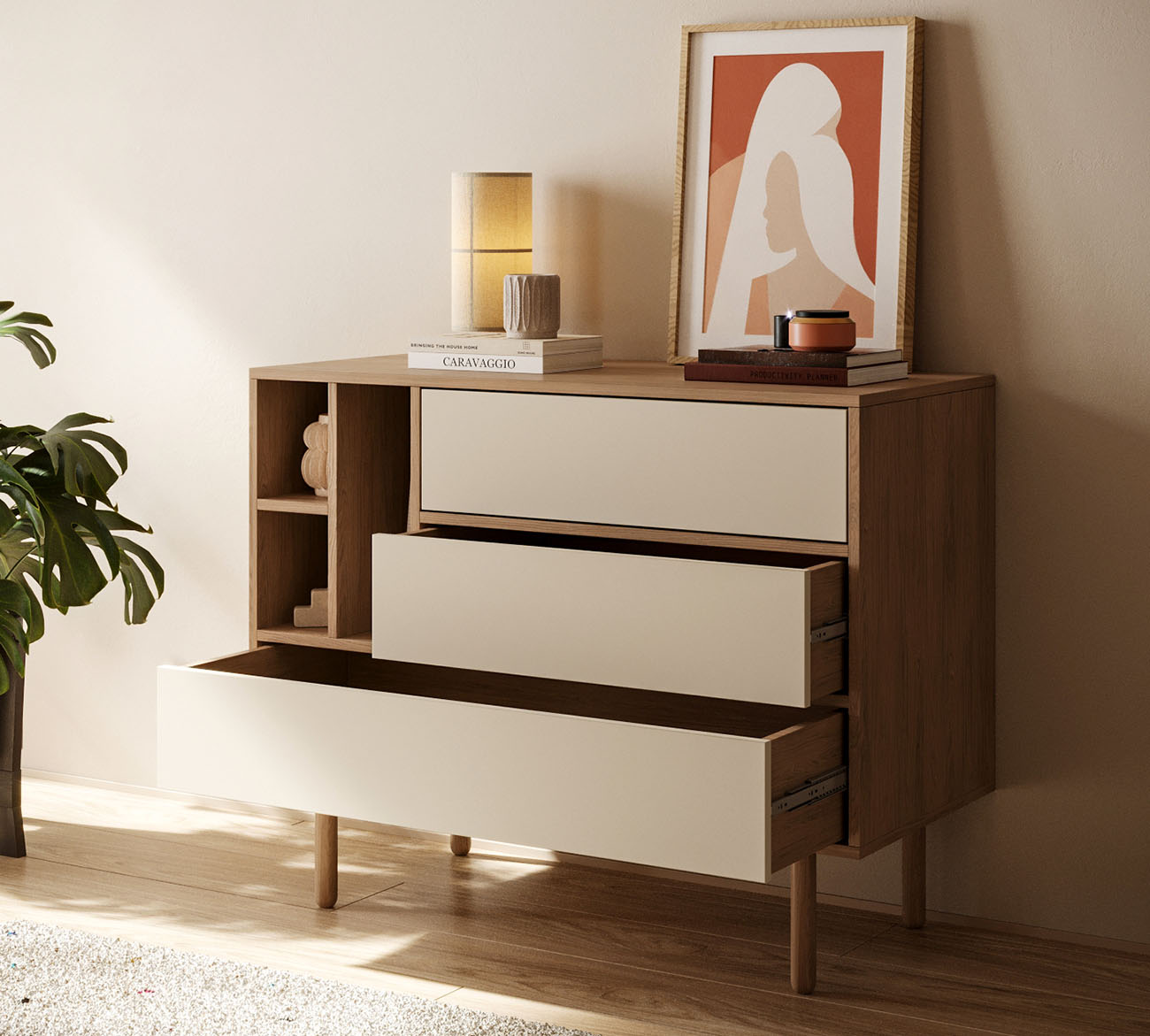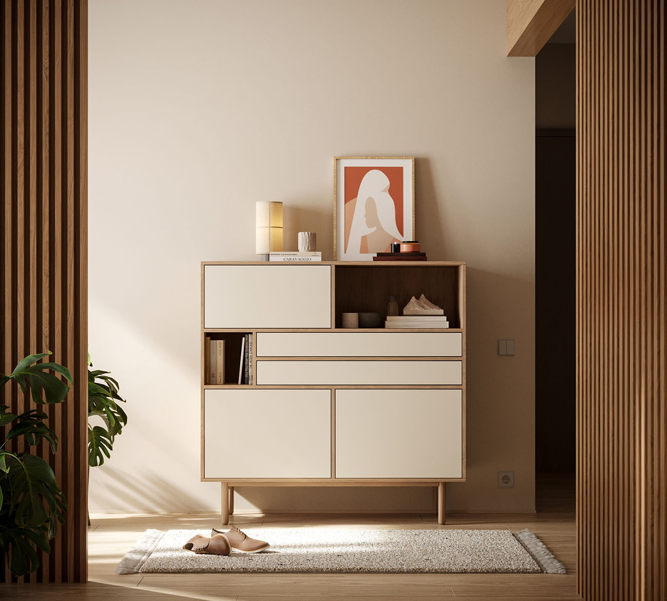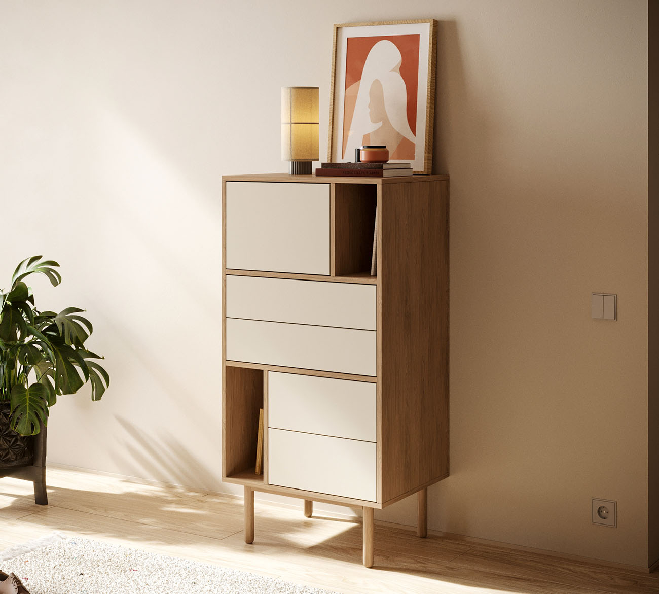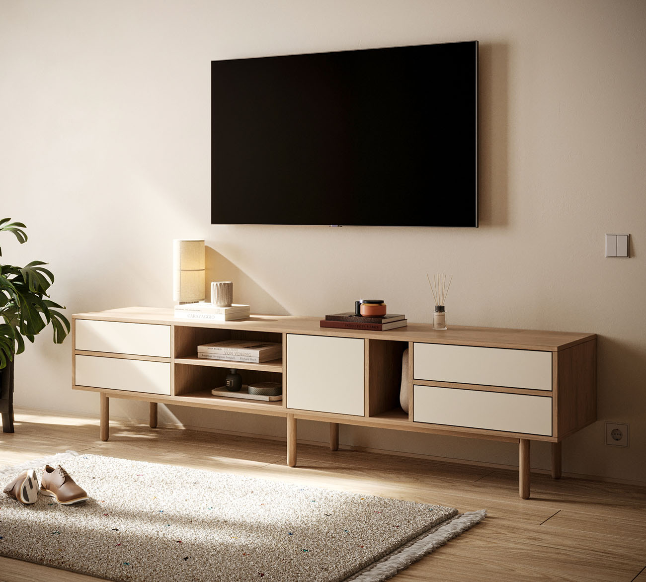 Гостиная Alice в скандинавском стиле покорила сердца ценителей минимализма и функциональности. Ее четкие линии и бесхитростная элегантность создают легкую и гармоничную атмосферу, а продуманная система хранения на основе вместительных выдвижных ящиков позволяет поддерживать порядок в вашем доме.