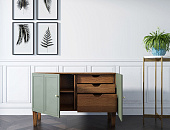 Особенности: дверцы и ящики оснащены доводчиками и латунными ручками.