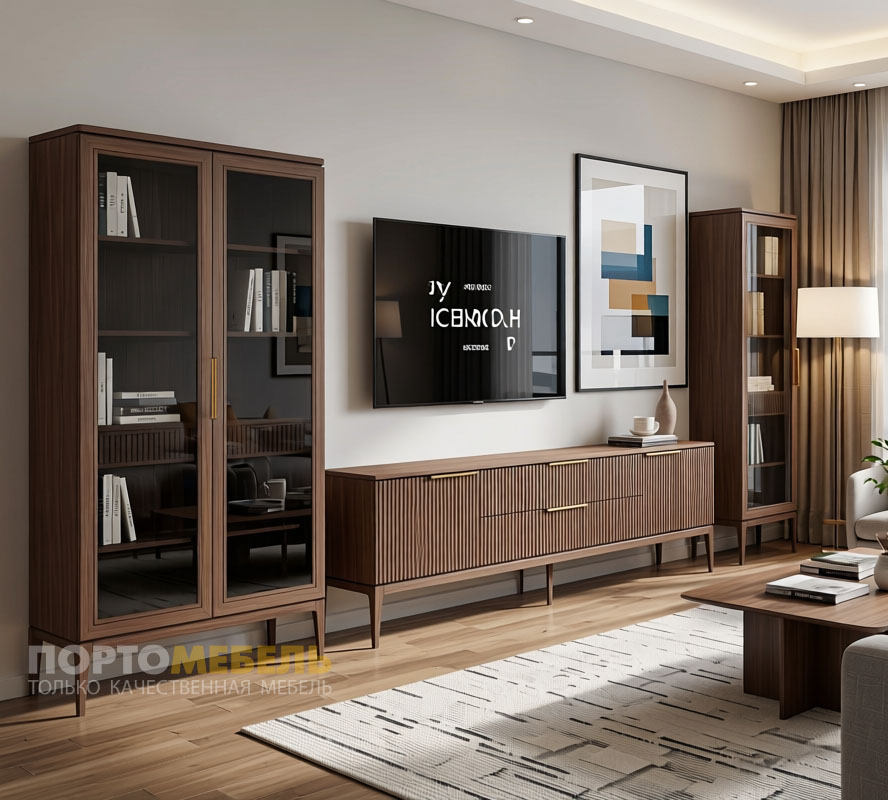 Особенности: фасады с фрезеровкой, ручки под латунь