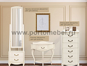 В ассортименте коллекции Джульетта столики журнальные и консоли, различные комоды, этажерки и зеркала, банкетка и другие предметы мебели. Вместительные тумбы и комоды станут отличным местом для хранения своих вещей и помогут сэкономить место в помещении. А необычное навесное зеркало является своеобразной изюминкой коллекции, но при этом отлично сочетается с остальными предметами мебели.