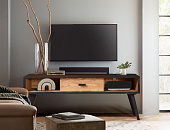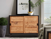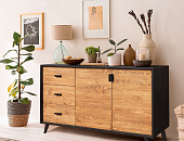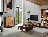 Мебель для гостиной Эрика подойдет для интерьера в кантри стиле или стиле лофт - предметы строгие и лаконичные, имеют современный дизайн с аутентичными акцентами. Оригинальные линии предметов коллекции с черными элементами непременно придутся по вкусу покупателям. Покрытие - масло пропиточное с воском BIO, а чёрным цветом - нанесён чёрный матовый лак.