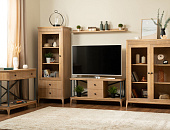 Мебель для гостиной Грета - новинка от производителя Тимберика. Преимущества этой коллекции – предельно простой дизайн, легкие формы, декорированные фасады.