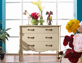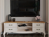 Гостиная Лебо - изящная коллекция мебели во французском стиле. Покрытие укрывистое, структура древесины почти не просматривается. Внутренние части выдвижных ящиков окрашены в цвет фасадов мебели.