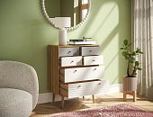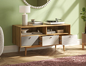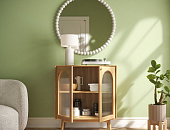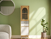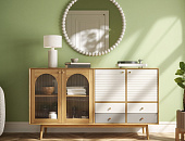 Мебель для гостиной Pollo выполнена в духе скандинавского минимализма — лаконичные формы, мягкие светлые тона. Комбинация витражного стекла и светлых фасадов придаёт конструкции визуальную лёгкость, а плавные линии и отсутствие лишнего декора подчёркивают сдержанную эстетику сканди-стиля. Простые ручки и слегка приподнятые ножки добавляют ощущение воздушности и свободы.
