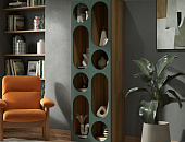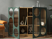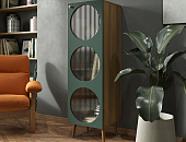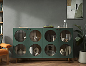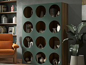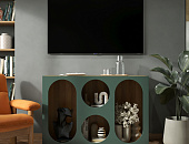 Гостиная ROSA, помимо своих оригинальных фасадов приглушенного зеленого цвета, скрывает за собой продуманную функциональность. Круглые и овальные отверстия, далеко не просто декоративный элемент, играют важную роль в организации пространства. Коллекция идеально вписывается в различные стили интерьера – от классического скандинавского до современного минимализма.