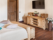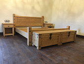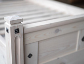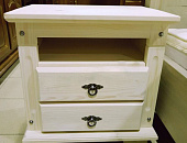Мебель для спальни Хлоя изготовлена из натурального массива сосны. На фасадах и крышках применяется толстый массив 2,5 - 3,0 см. Использованы качественные красители, которые не выгорают на солнце и не темнеют со временем.