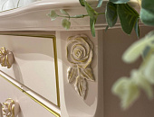 Изысканная спальня Golden Rose - это отличное решение для интерьера в стиле прованс или классическом стиле. Предметы коллекции украшены резным декором в форме роз с золотой патиной, что придаёт изделиям лёгкость и романтичные черты.