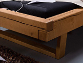В ассортименте кровати и тумбы в минималистском дизайне с эффектом ручного старения. Кровати изготовлены их бруса массива сосны сечением 90х160 см. Эта массивность, а так же естественные трещины на кроватях, придают им дополнительный шарм. Тумбы прикроватные изготовлены из мебельного щита толщиной 32 мм. Плавное выдвижение и закрывание ящика обеспечивается системой скрытых направляющих с доводчиками.