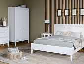 Мебель для спальни Ольса прекрасно подойдет для поклонников светлых интерьеров. Предметы мебели имеют классическую скандинавскую форму, изготовлены из массива сосны, оснащены надежной фурнитурой.