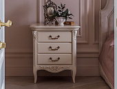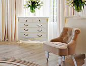 Коллекция Romantic символизирует уникальный стиль деревенского прованса, переплетенного с роскошью замысловатых дворцовых интерьеров. Изделия выполнены в легких и естественных нежных оттенках бежевого, белого и молочного. Точеные ножки шкафов, кроватей и тумбочек, фигурные филенки на дверцах создают атмосферу старинного интерьера.