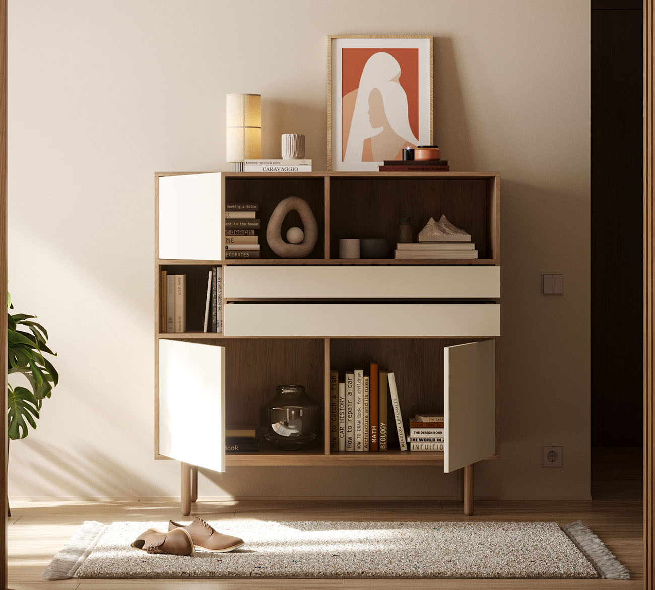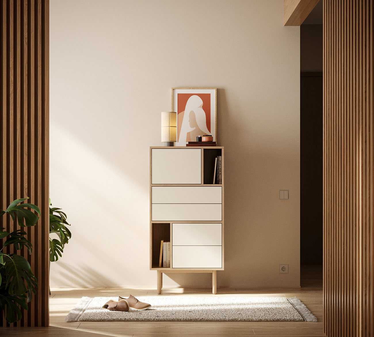 Коллекция Alice в скандинавском стиле покорила сердца ценителей минимализма и функциональности. Ее четкие линии и бесхитростная элегантность создают легкую и гармоничную атмосферу, а продуманная система хранения на основе вместительных выдвижных ящиков позволяет поддерживать порядок в вашем доме.