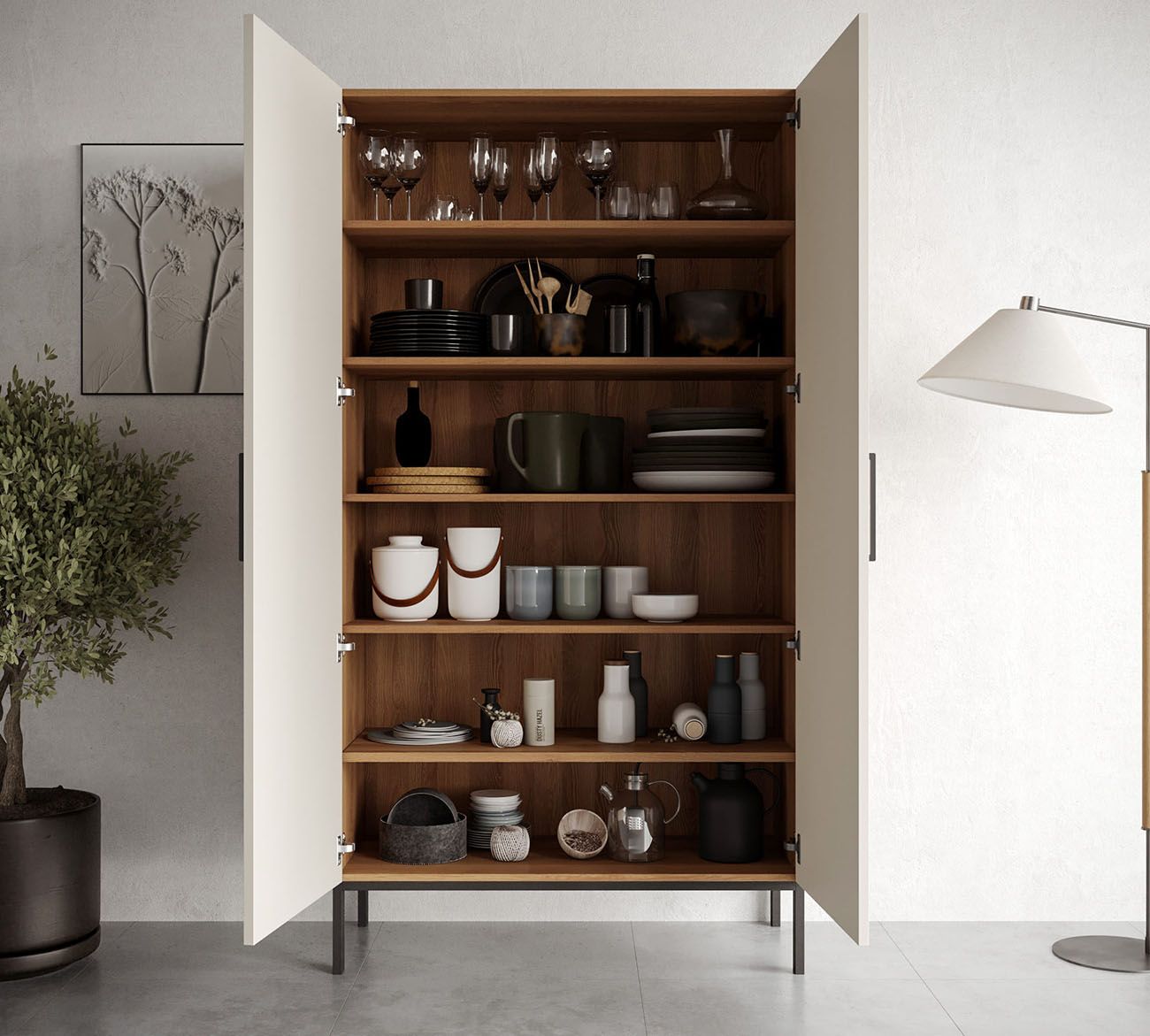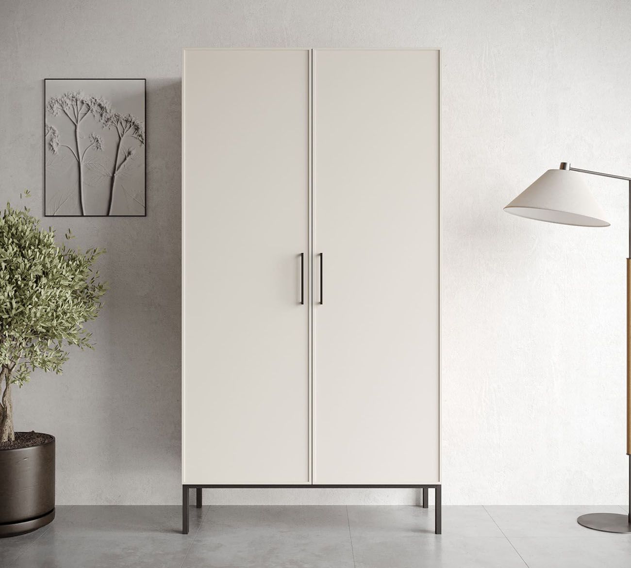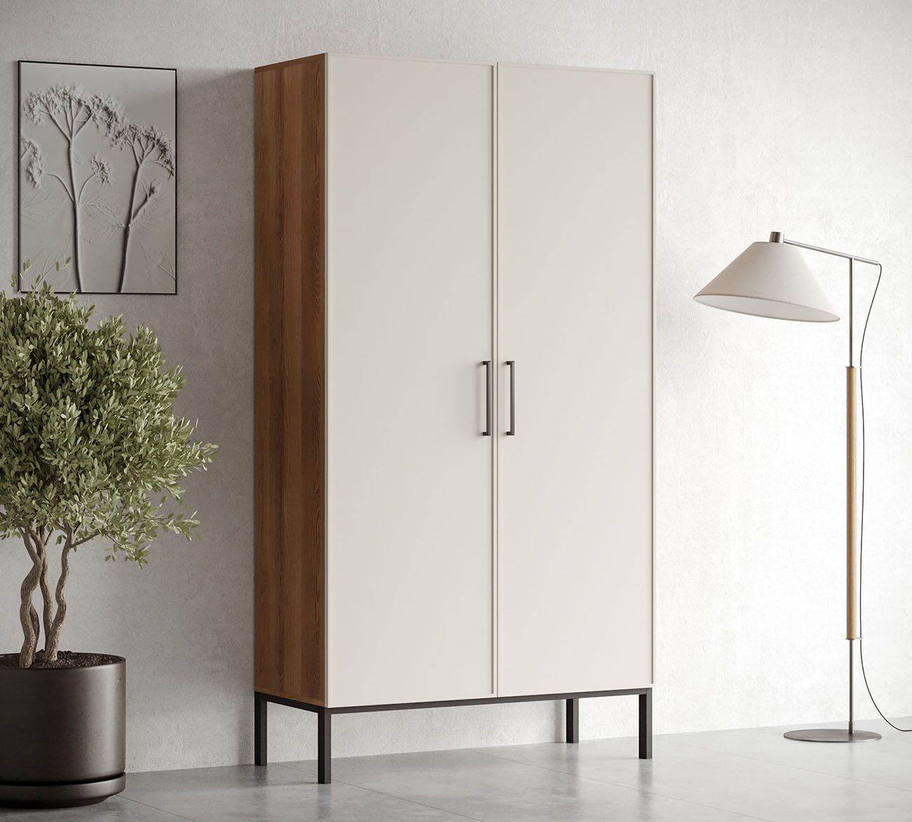 Шкаф двухдверный Nicole. Корпус - дуб шерман конъяк (белый цвет фасадов)/черный (зеленый цвет фасадов), ножки - черные.