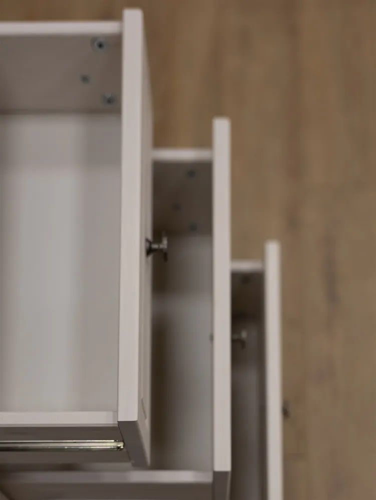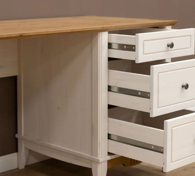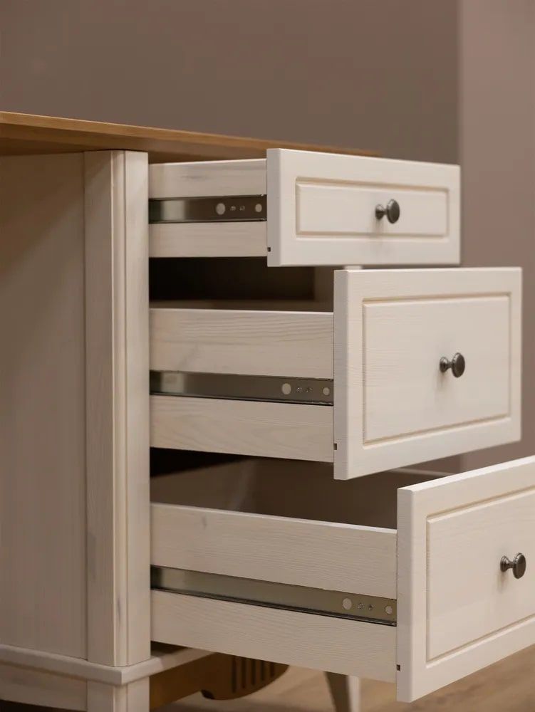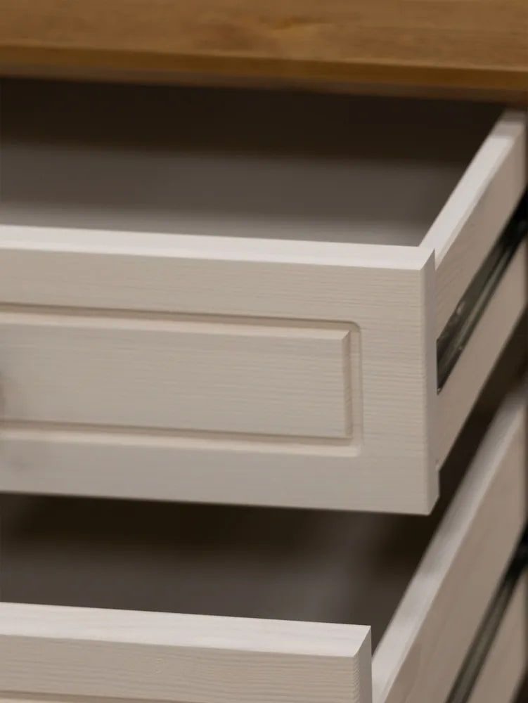 Фурнитура: Петли с доводчиком вкладные. Направляющие шариковые частичного выдвижения, без доводчиков. Ручка кнопка (состаренное серебро)