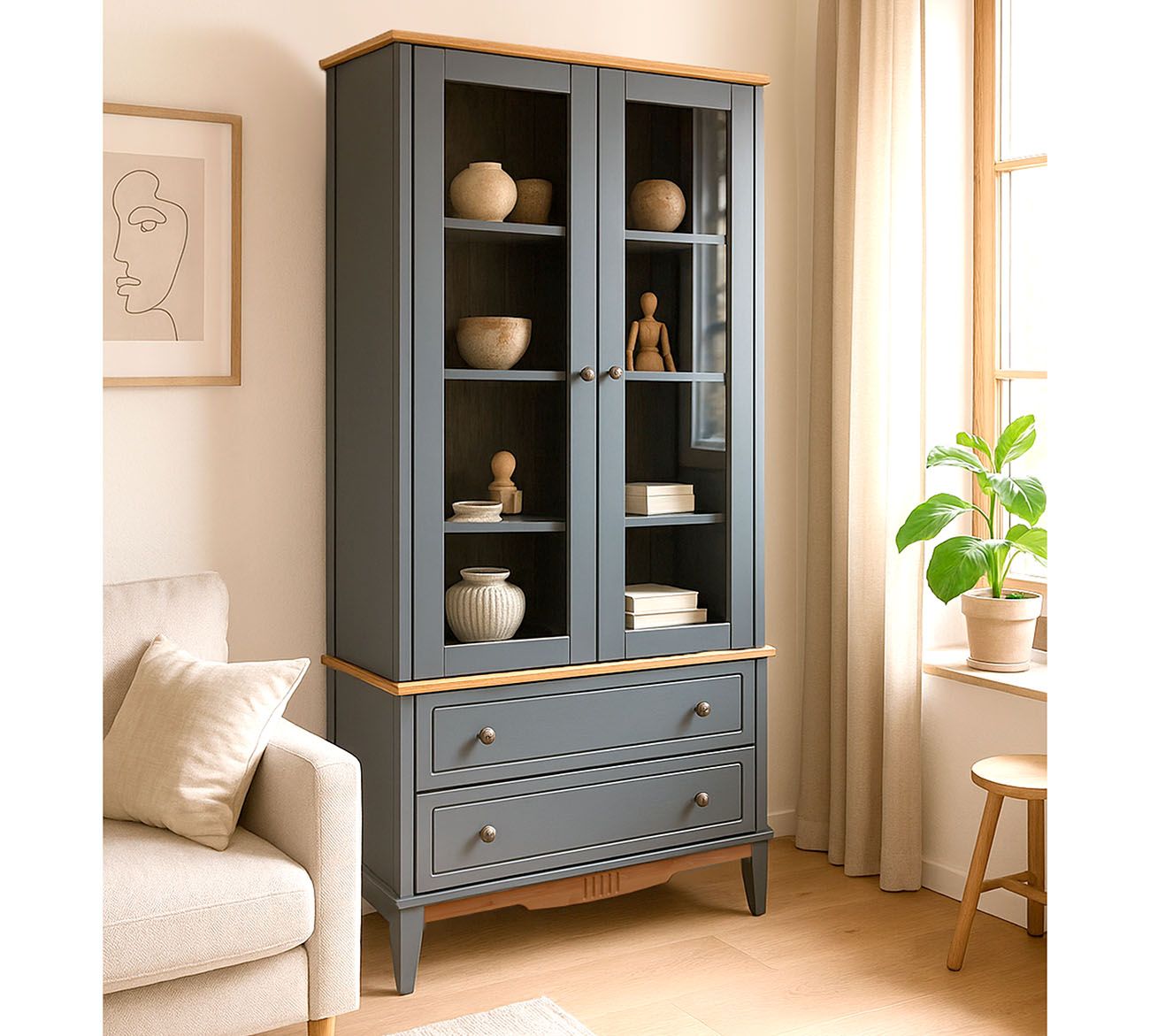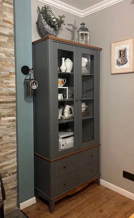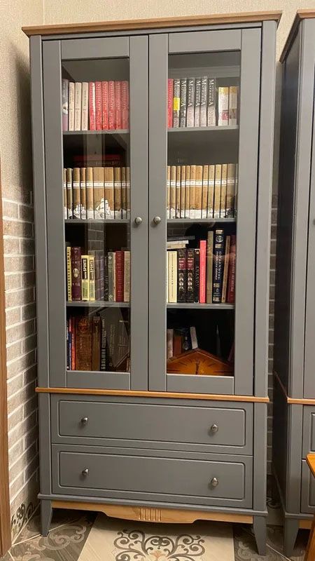 Фурнитура: Петли с доводчиком вкладные. Направляющие шариковые частичного выдвижения, без доводчиков. Ручка кнопка (состаренное серебро)
