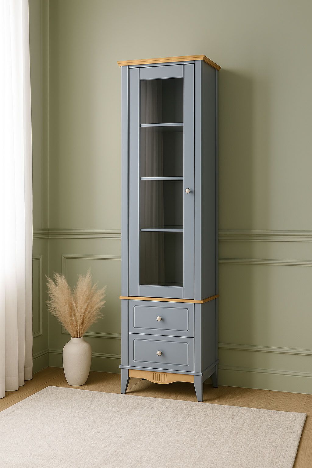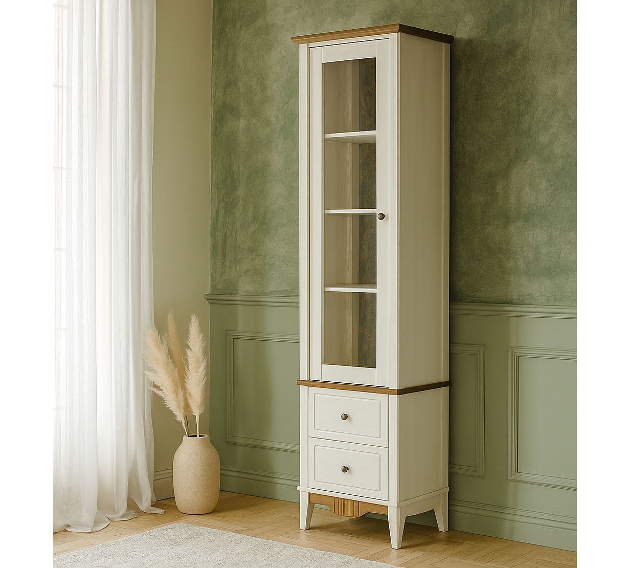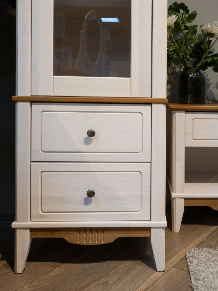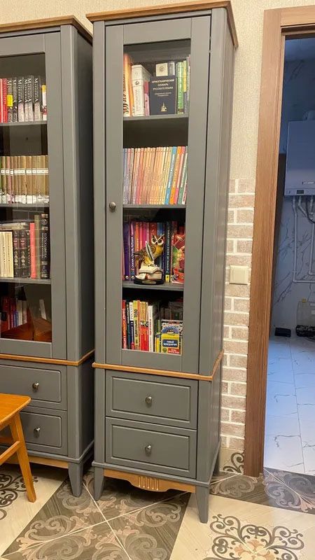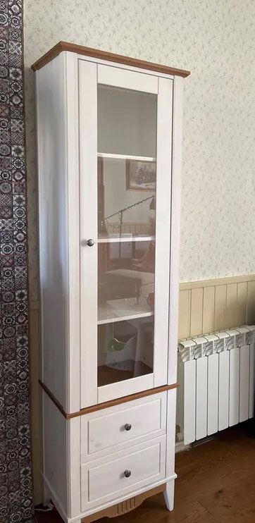 Фурнитура: Петли с доводчиком вкладные. Направляющие шариковые частичного выдвижения, без доводчиков. Ручка кнопка (состаренное серебро)