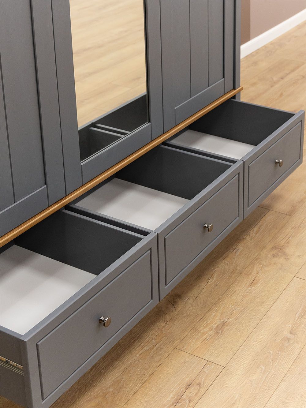 Фурнитура: Петли с доводчиком вкладные. Направляющие шариковые частичного выдвижения, без доводчиков. Ручка кнопка (состаренное серебро)