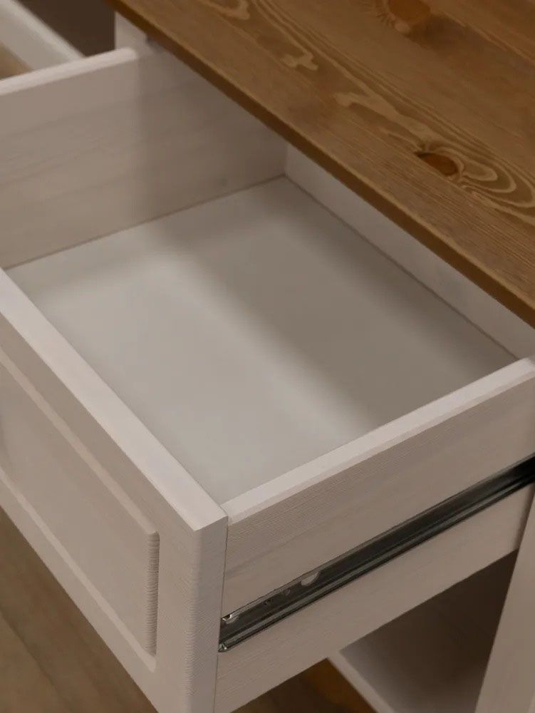 Фурнитура: Петли с доводчиком вкладные. Направляющие шариковые частичного выдвижения, без доводчиков. Ручка кнопка (состаренное серебро)