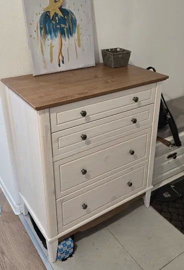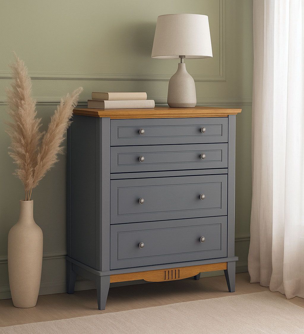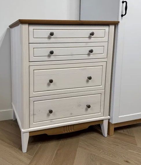 Фурнитура: Петли с доводчиком вкладные. Направляющие шариковые частичного выдвижения, без доводчиков. Ручка кнопка (состаренное серебро)