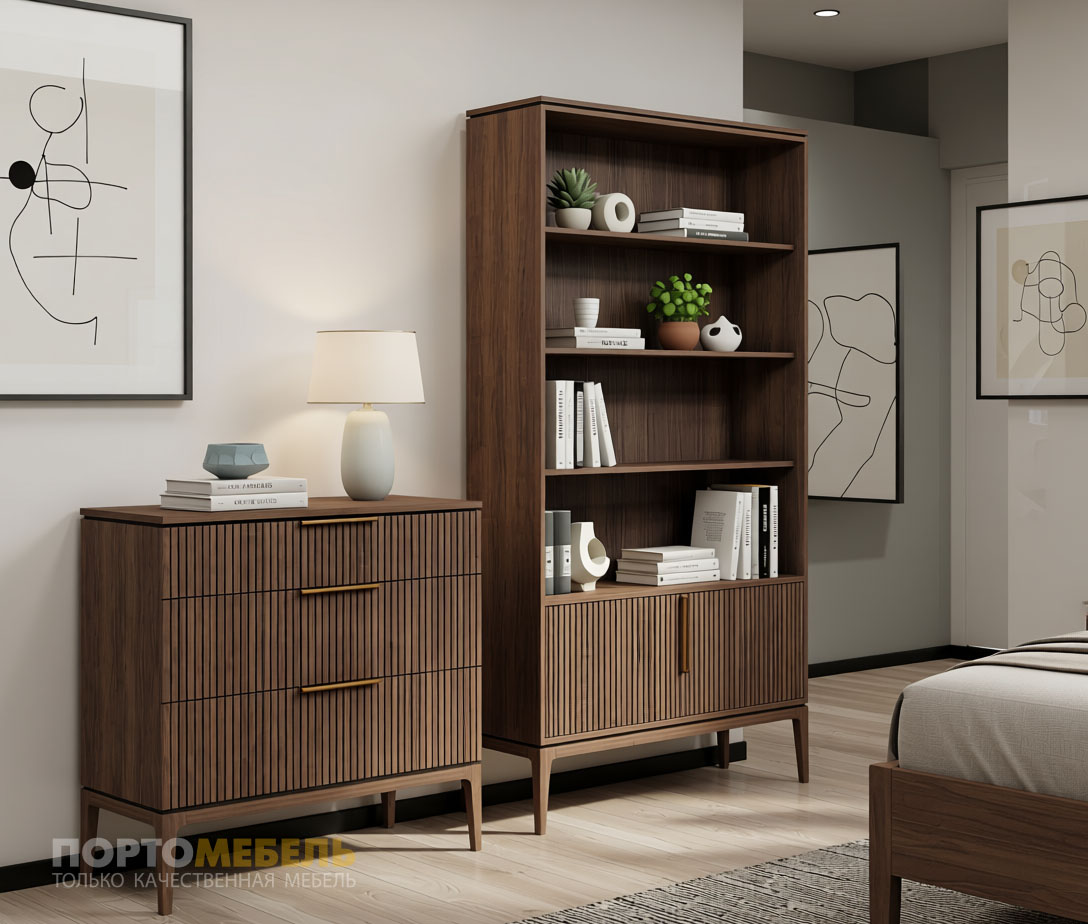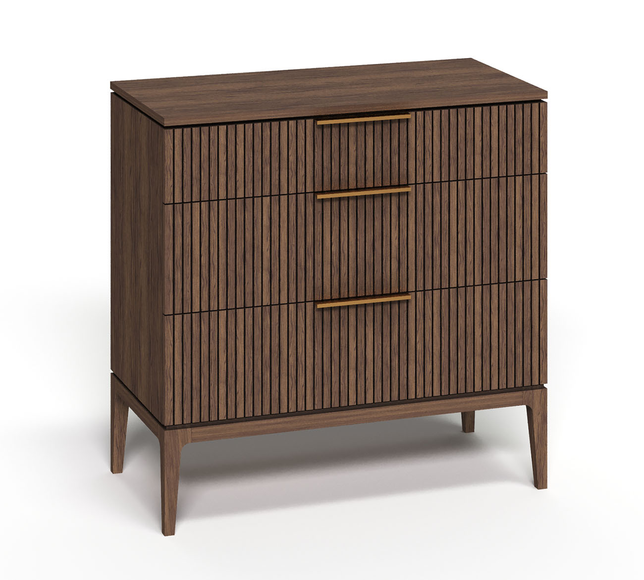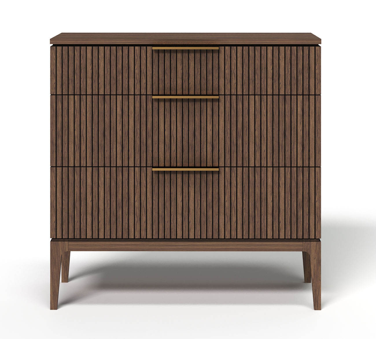 Объем: 0.37 м3Комод с 3 ящиками Bryce. Фасады с фрезеровкой, мебельная ручка - под латунь.