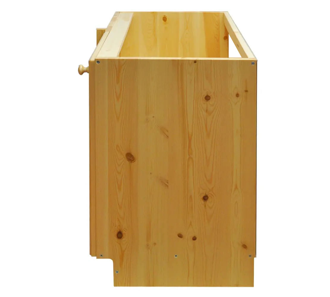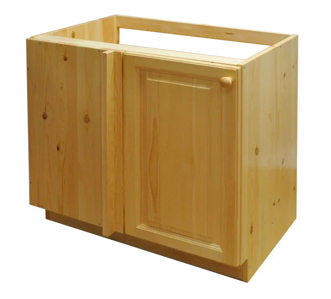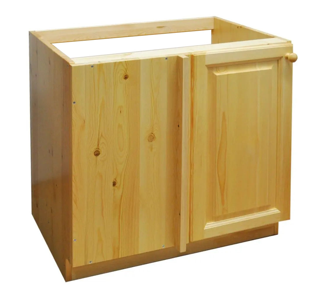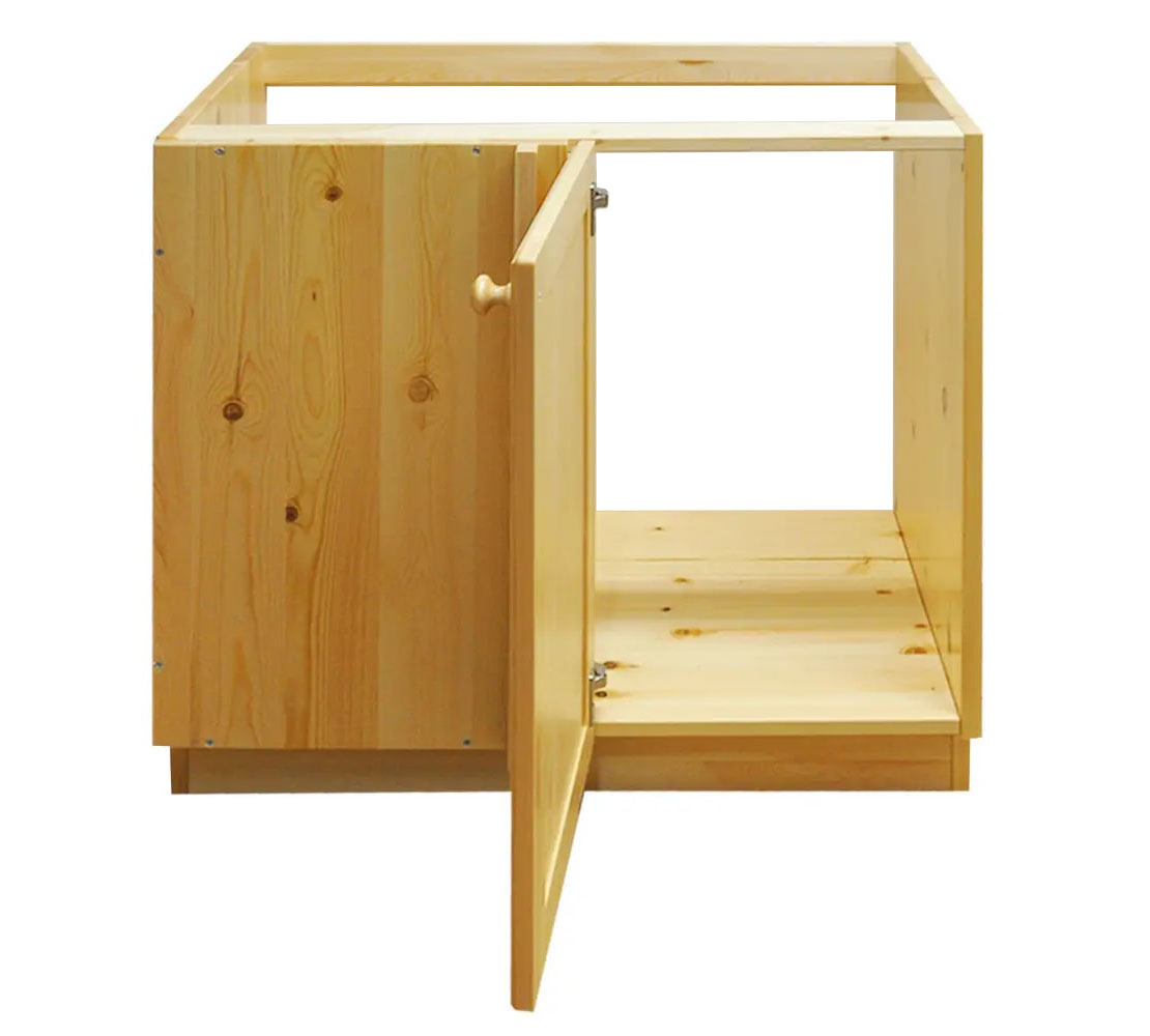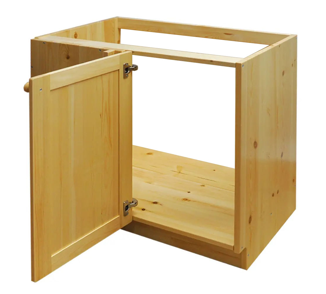 Особенности: Можно собрать левый либо правый вариант. Толщина щита 20 мм. Фасады из бессучкового массива. Задней стенкой не комплектуется.