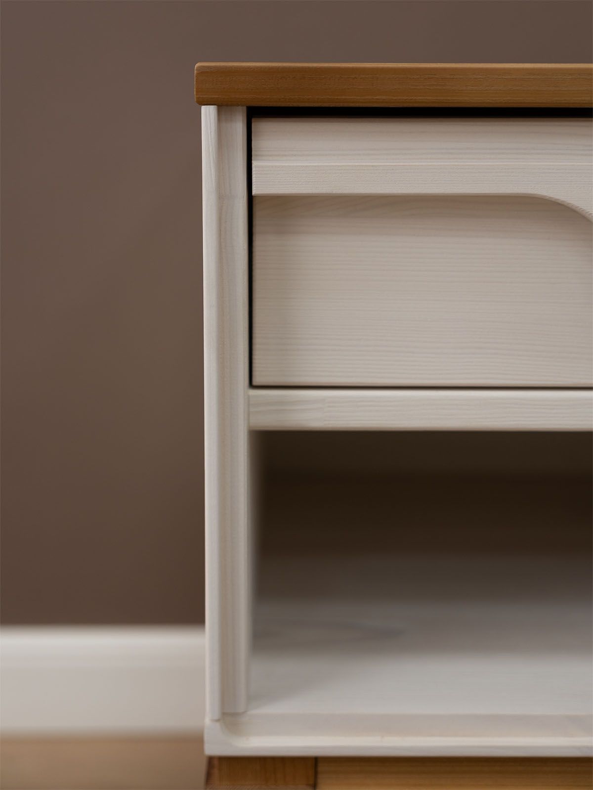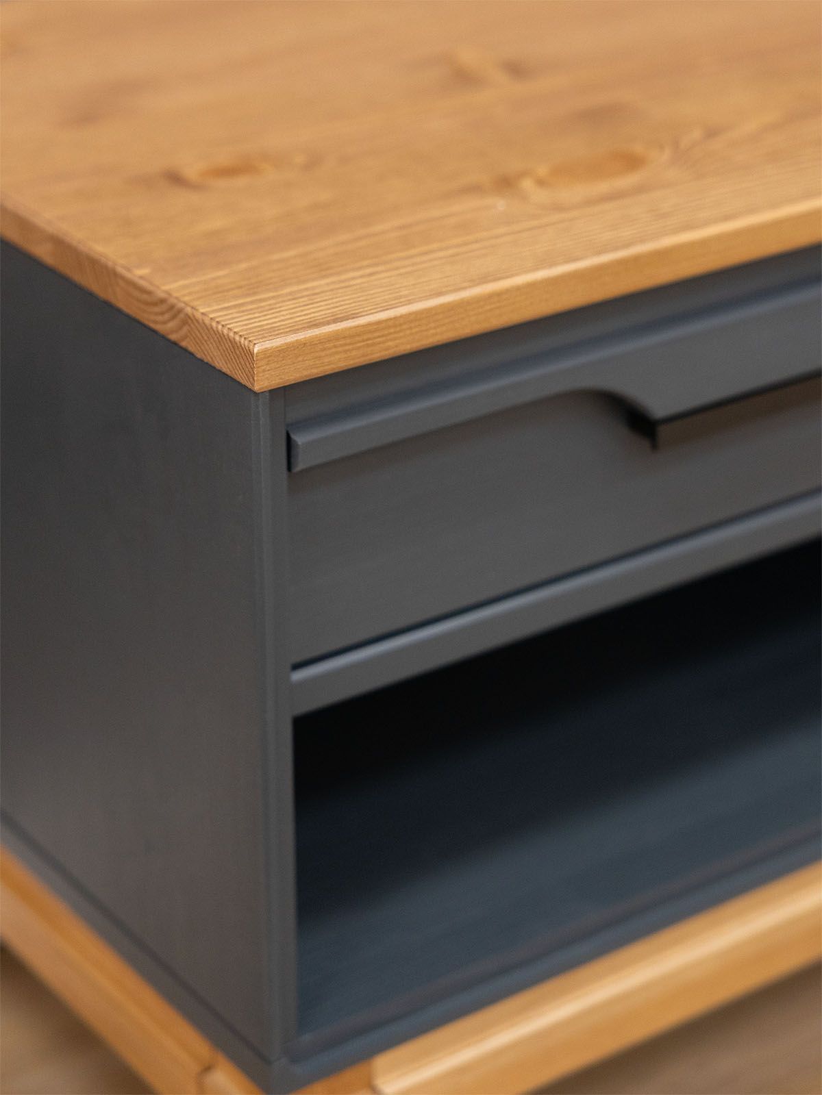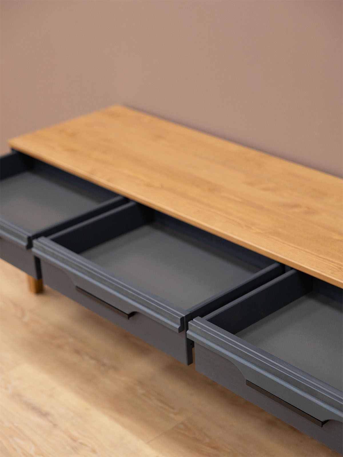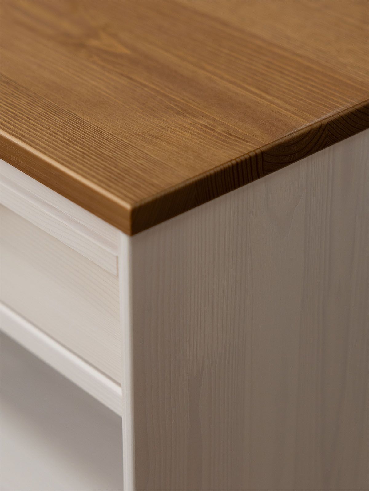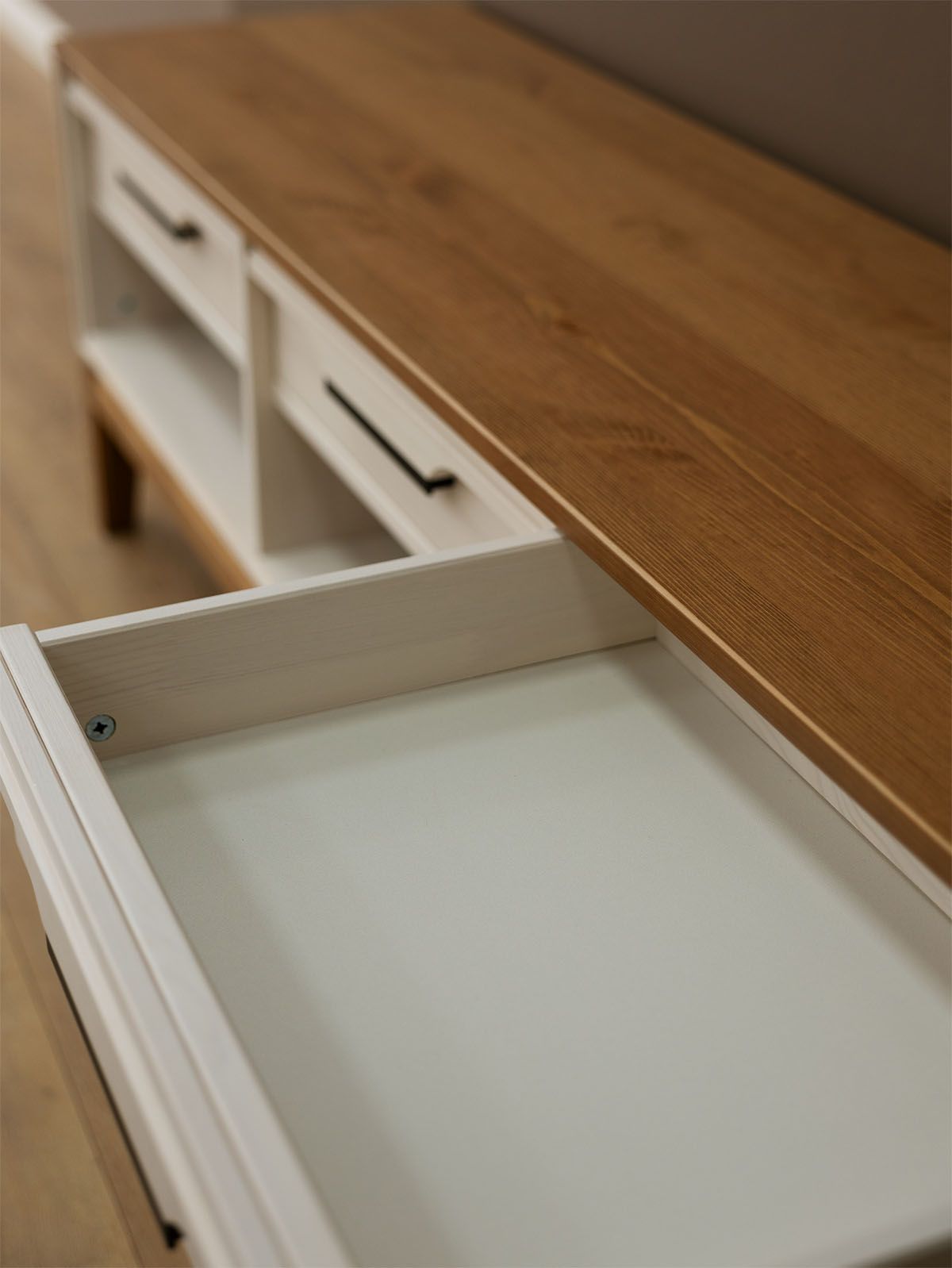 Фурнитура: Направляющие скрытого монтажа с доводчиками, петли с доводчиками. Металлические черные ручки.