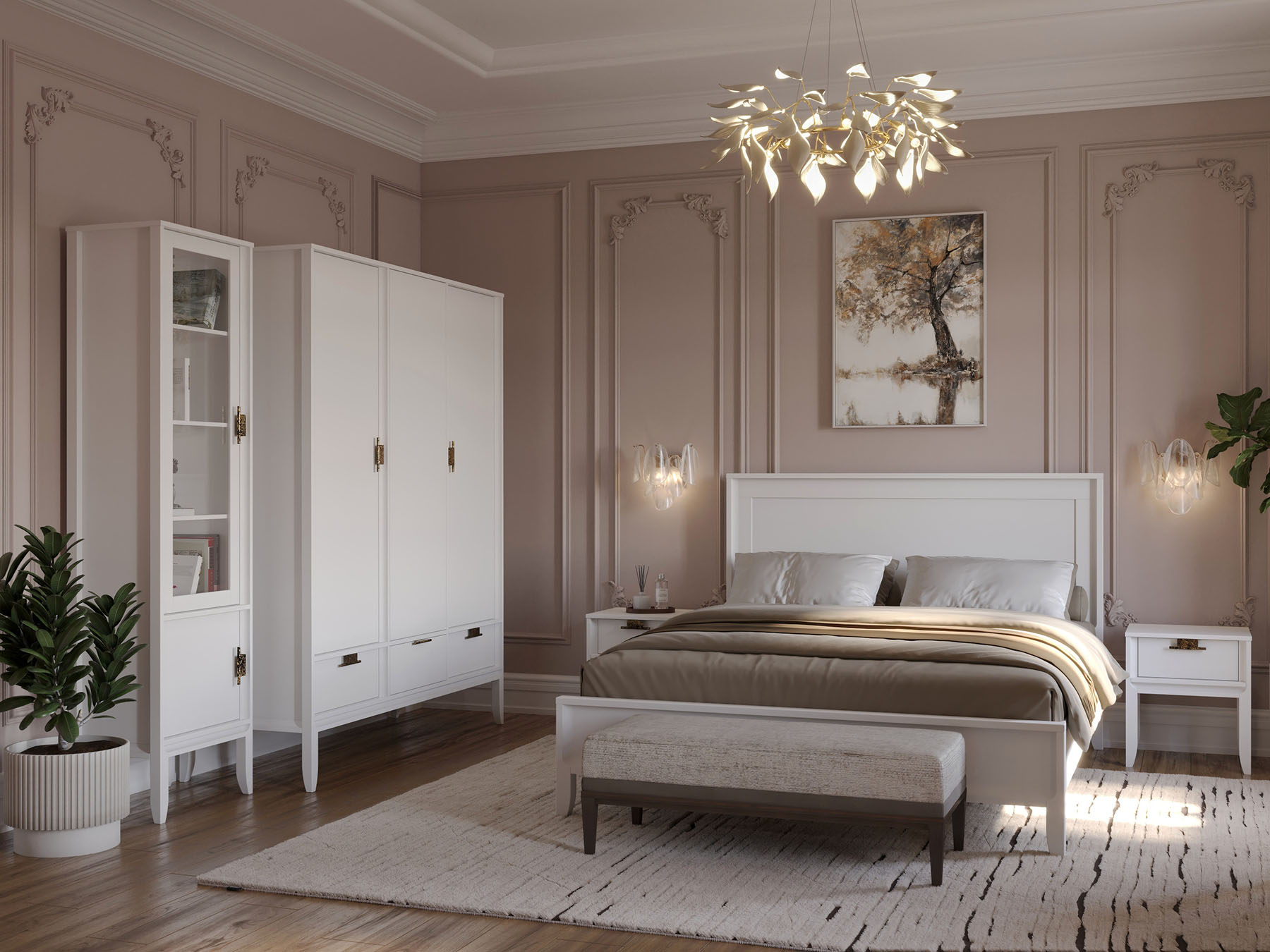 Комбинируйте с высоким шкафом Бридж, комодом с зеркалом и тумбами из коллекции для создания спального ансамбля в стиле минимализм и современной классики. Двухцветная гамма браун/белый или браун/серый создаёт монохромную палитру — добавьте акцентный цвет через текстиль (терракотовый, индиго, изумрудный) для визуального тепла без перегрузки деталями. Дополните пространство модульной системой хранения вдоль торцевой стены — чередуйте открытые и закрытые блоки в шахматном порядке.
