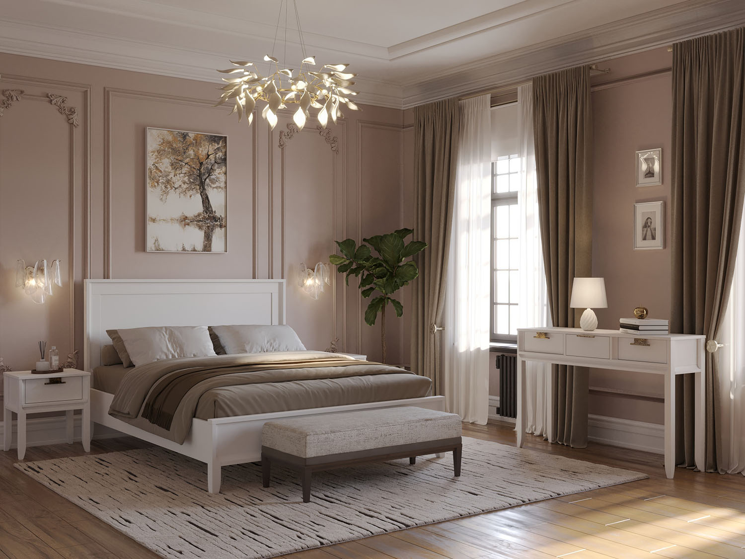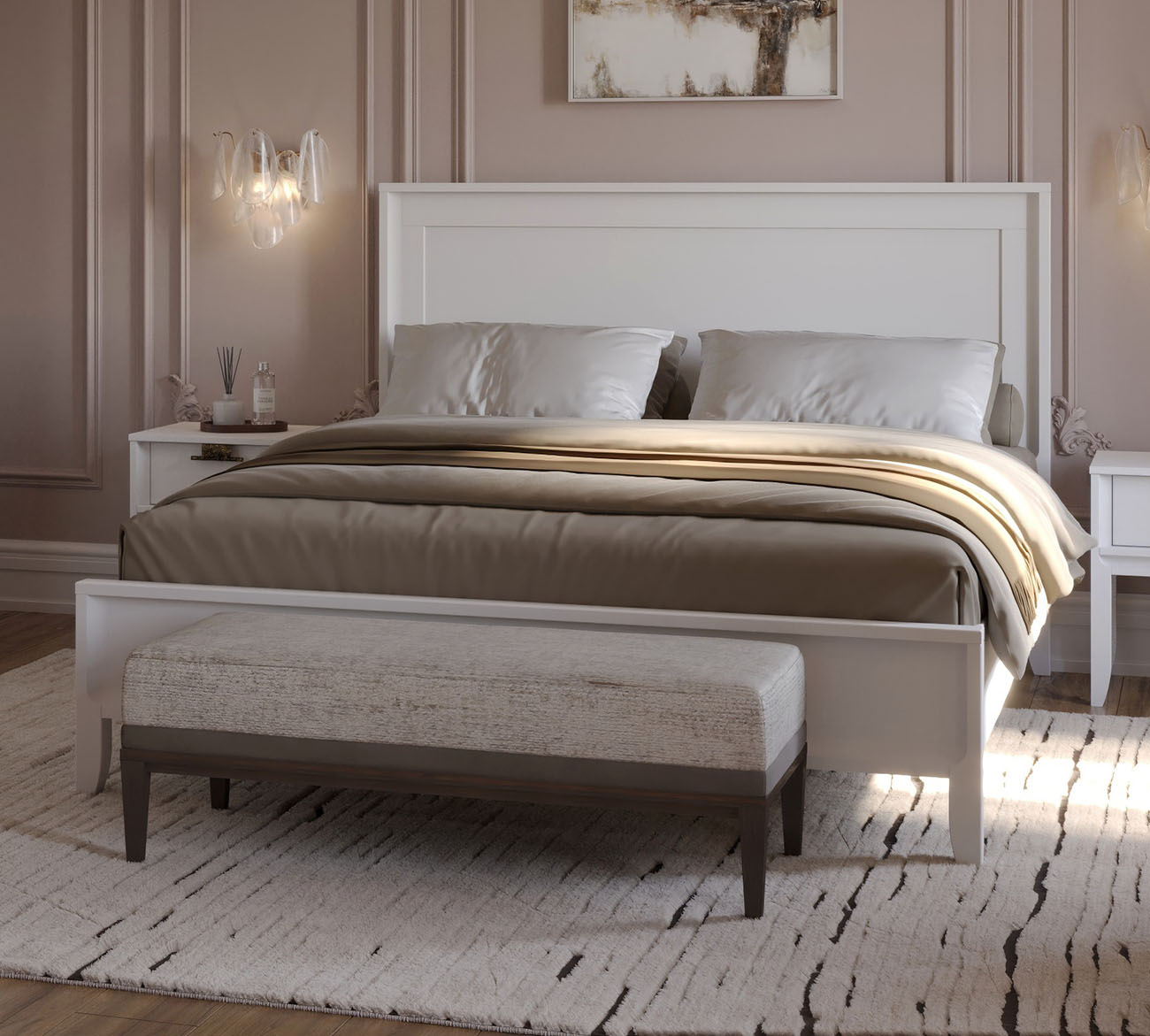 Кровать двуспальная Бридж — лаконичное решение для спален от 13 м², мастер-спален от 15 м² и студий от 24 м². Размещайте изголовьем к стене, оставляя минимум 65 см с боковых сторон для свободного доступа при заправлении белья и уборке. Контрастное сочетание браун и белого лака в двухцветной окраске создаёт графичную композицию — тёмный корпус подчёркивает строгость форм, светлый фасад визуально облегчает массивность спального места 160×200 см. Вальцовая окраска плоских поверхностей из массива сосны создаёт идеально ровное покрытие со скрытой текстурой дерева — эстетика современного минимализма с натуральной основой.