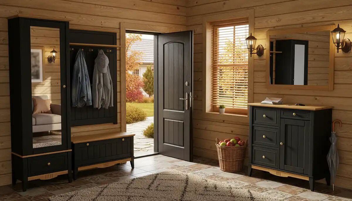 Шкаф для прихожей Пенни Блэк с зеркалом
