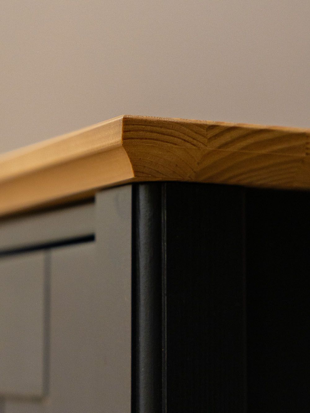 Фурнитура: Петли с доводчиком вкладные. Направляющие шариковые частичного выдвижения, без доводчиков. Ручка кнопка (состаренное серебро)