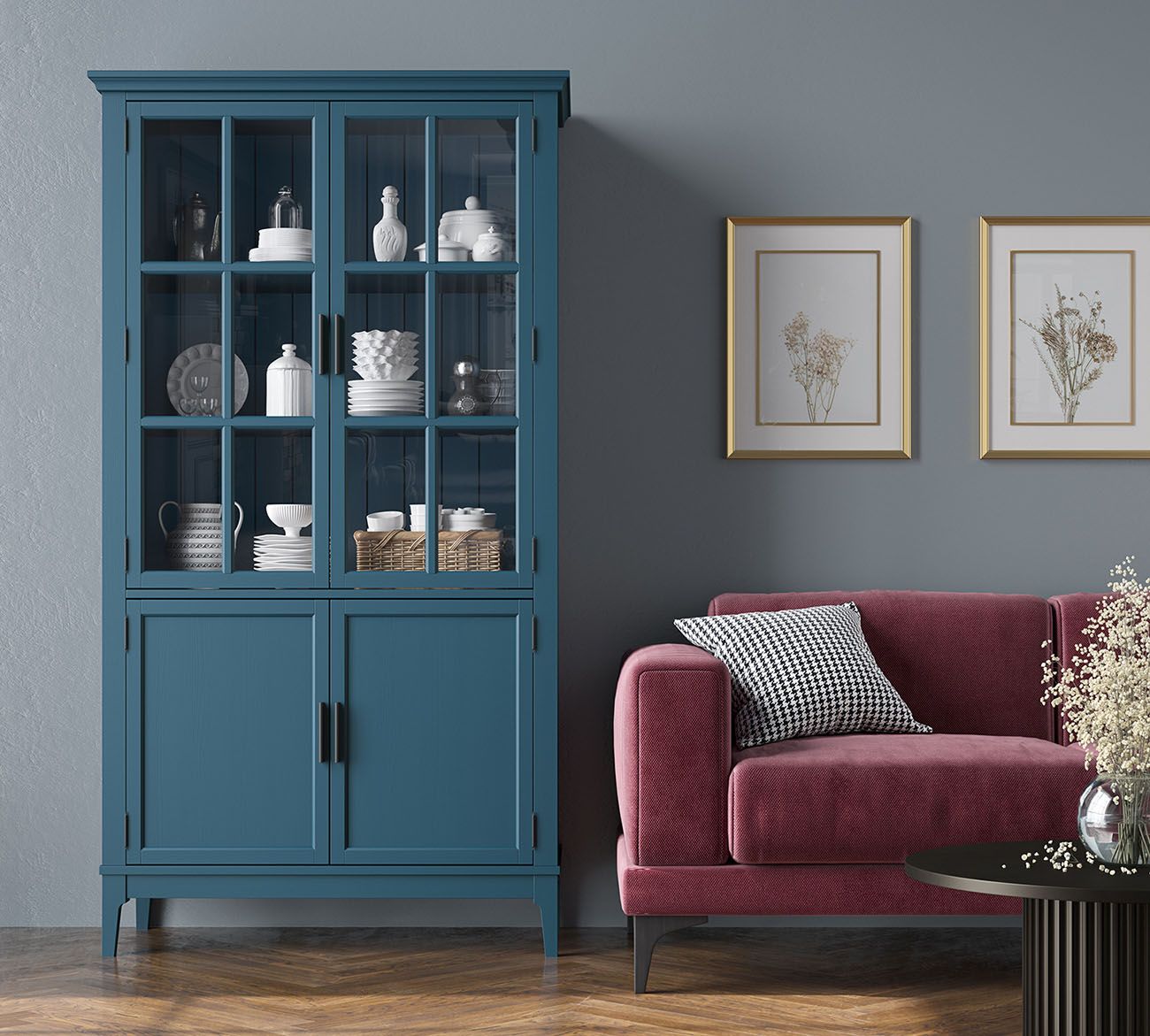 В скандинавских и нордических интерьерах сочетайте массив сосны с белыми или светло-серыми стенами, льняными шторами натуральных оттенков и керамикой ручной работы в витринных секциях. Для классических пространств добавляйте графичный акцент — темно-зеленый текстиль в обивке стульев, латунные ручки и подсветку внутри витрины, хрустальные бокалы на видимых полках. В интерьерах прованс миксуйте с плетеными корзинами, букетами лаванды и фарфоровыми сервизами в пастельных тонах. Избегайте перегрузки декором — натуральная красота массива сосны и ритм стеклянных вставок требуют лишь деликатной поддержки аксессуарами.