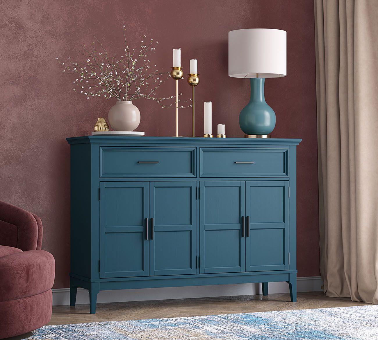 Комбинируйте с шкафом для посуды Квадро-С 42 или стеллажом Квадро-С 40, выстраивая симметричную композицию вдоль стены. В столовых зонах миксуйте с обеденной группой на 6-8 персон, используя тумбу для хранения сервировочных принадлежностей. В гостиных комбинируйте с тумбой ТВ Квадро-С 42, создавая асимметричную композицию разной высоты. Оставляйте минимум 80 см между тумбой и обеденным столом или диваном для комфортного доступа к дверцам.