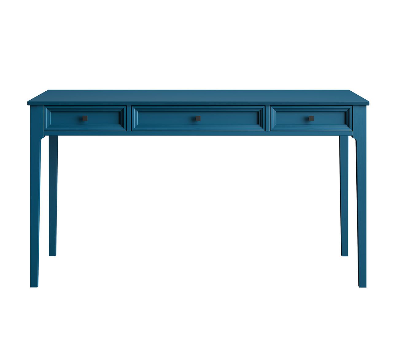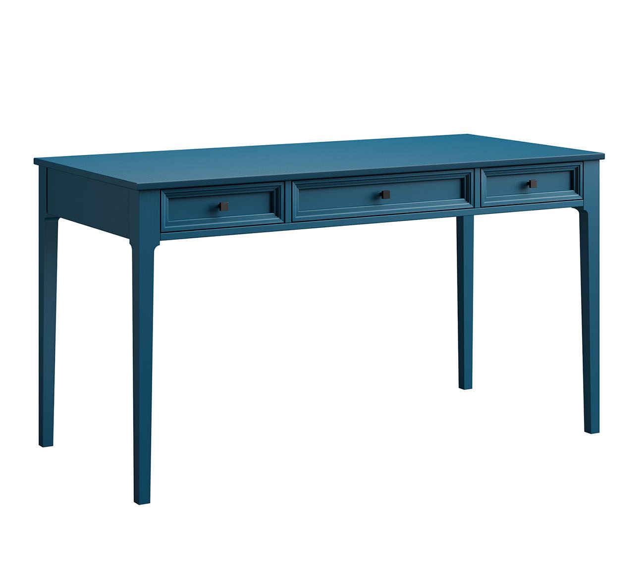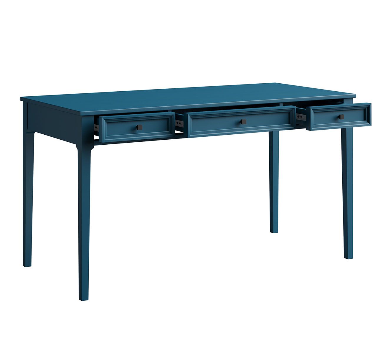 Натуральный массив сосны с просторной столешницей работает как теплый акцент в современных рабочих пространствах с нейтральной отделкой. Оптимальная ширина столешницы вмещает монитор 24-27 дюймов, клавиатуру, мышь и пространство для письма, оставляя пространство для документов и личных предметов. Натуральная текстура древесины разбивает монотонность техники, превращая функциональную зону в эстетически приятное пространство. Используйте комбинированное освещение — потолочный светильник с нейтральным светом 4000K и настольную лампу, создающую бестеневое освещение рабочей поверхности.