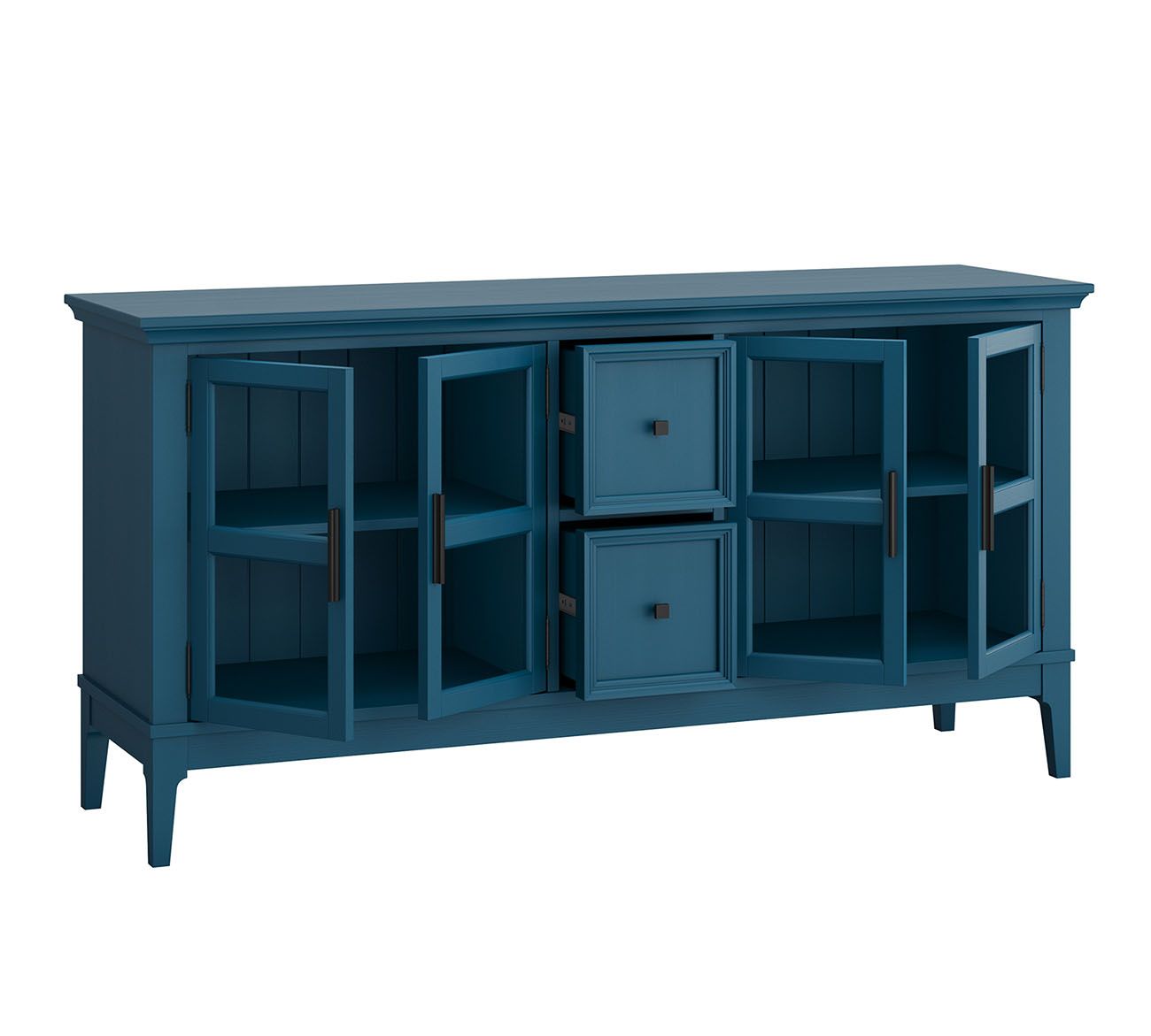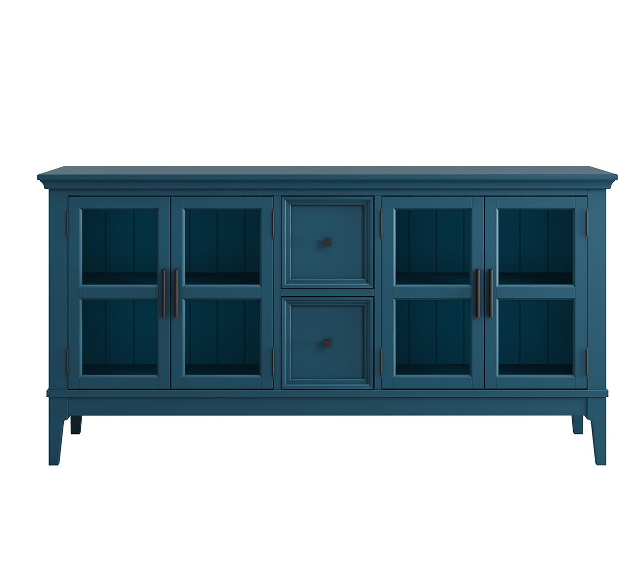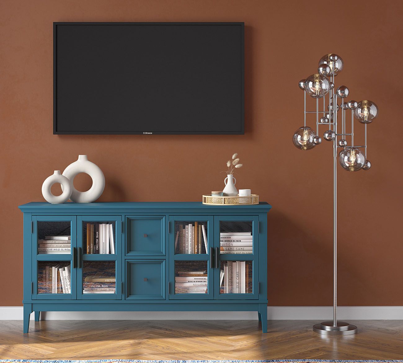 Комбинируйте с открытыми стеллажами Квадро-С 40 по бокам для хранения книг, винила и декора или с высокими шкафами для посуды Квадро-С 42, выстраивая симметричную композицию. В просторных помещениях от 25 м² добавьте комод Квадро-С 04 у противоположной стены для баланса. Миксуйте с модульной диванной группой на расстоянии 300-350 см, крупным журнальным столом и парой кресел по бокам. Оставляйте минимум 80 см для размещения напольных растений или декоративных объектов.