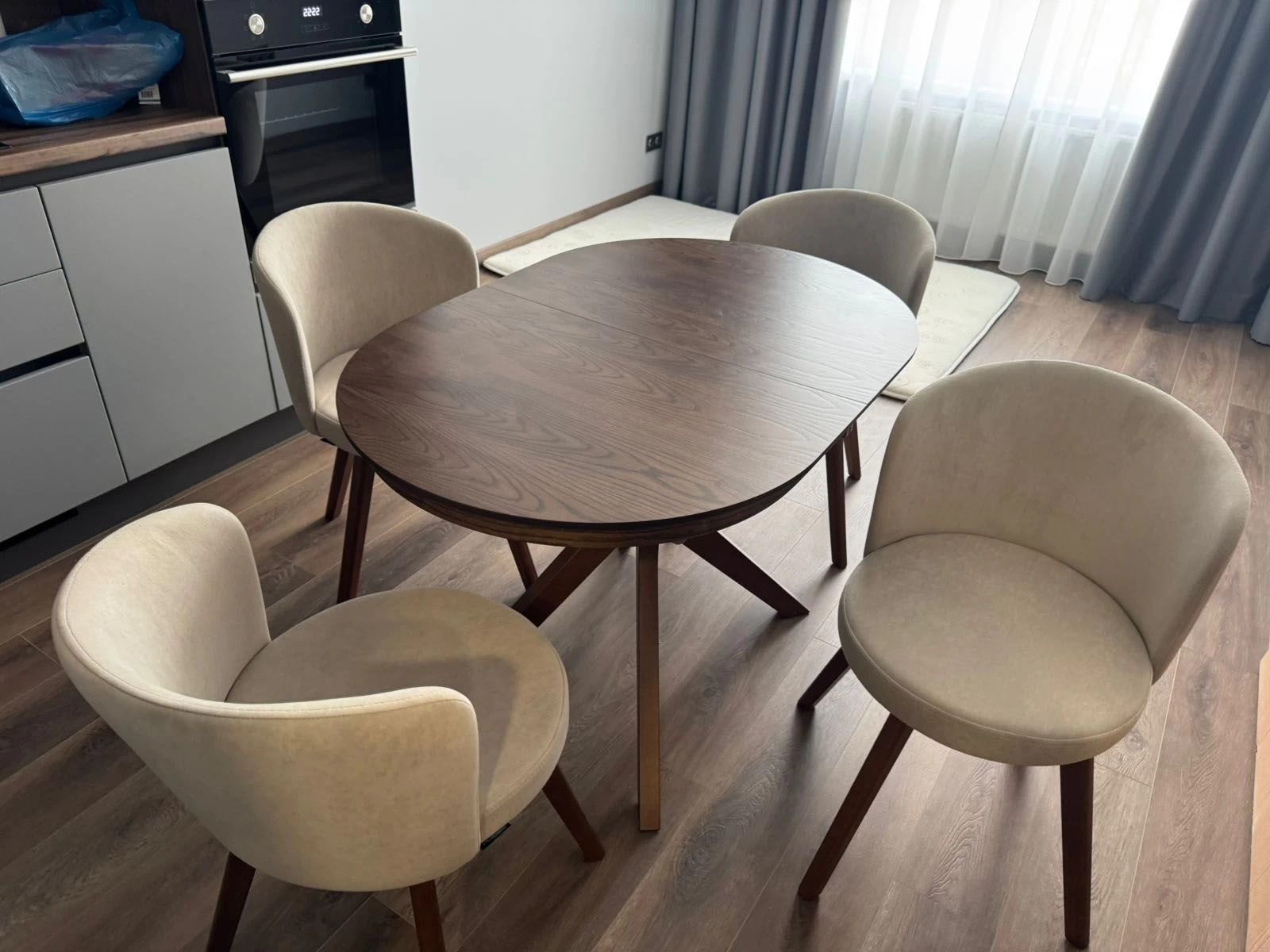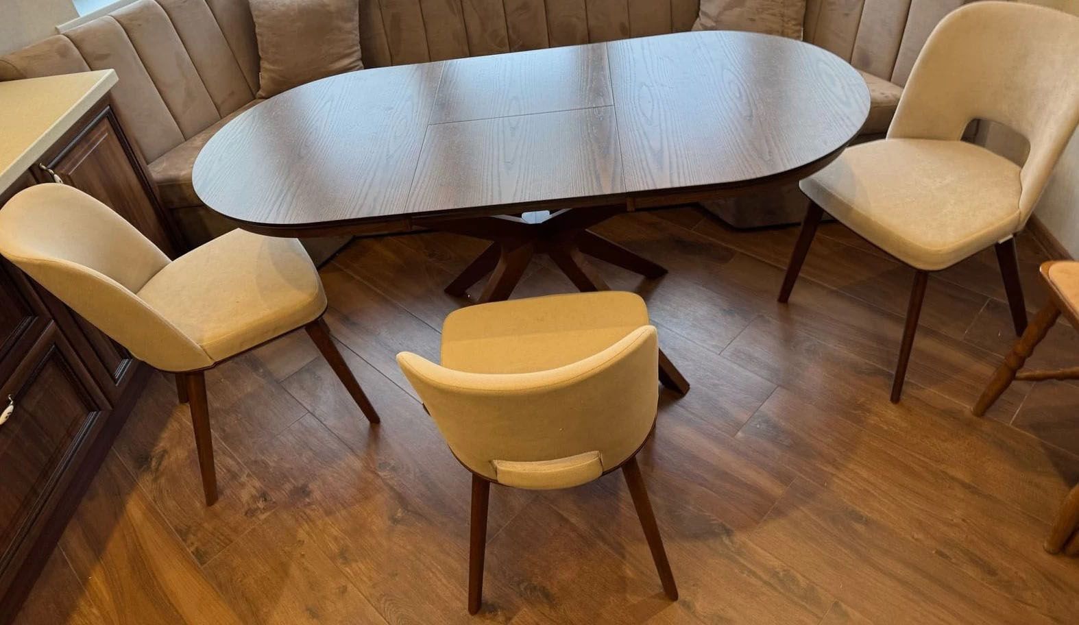 Внутреннее наполнение: В этом столе применены механизмы царгового крепления с синхронным раздвижением, отличающиеся от прочих тем, что при выдвижении одной половины столешницы, одновременно выдвигается и вторая, что позволяет без усилий раздвинуть столешницы самостоятельно, не прибегая к помощи.