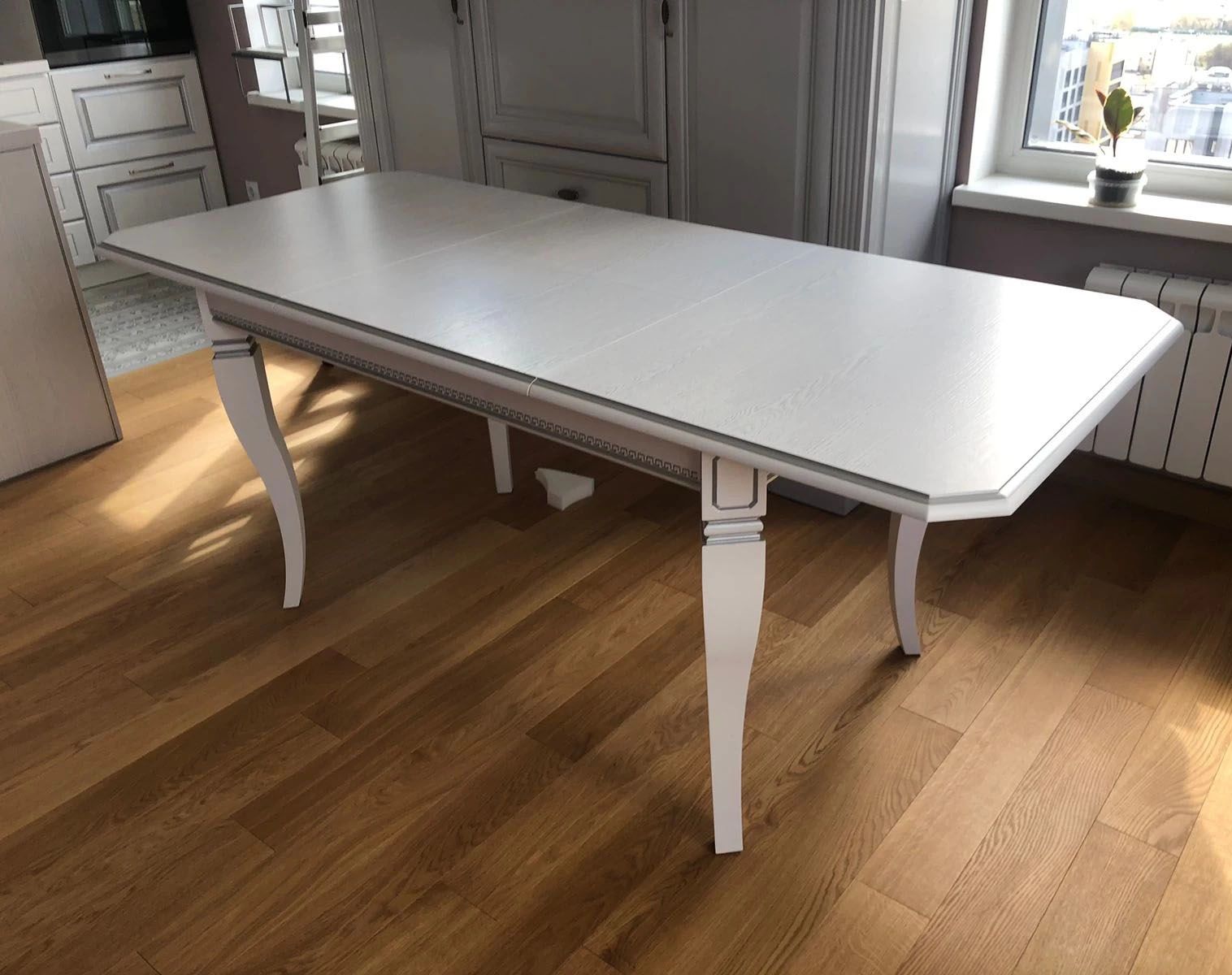 Внутреннее наполнение: В этом столе применены механизмы царгового крепления с синхронным раздвижением, отличающиеся от прочих тем, что при выдвижении одной половины столешницы, одновременно выдвигается и вторая, что позволяет без усилий раздвинуть столешницы самостоятельно, не прибегая к помощи.