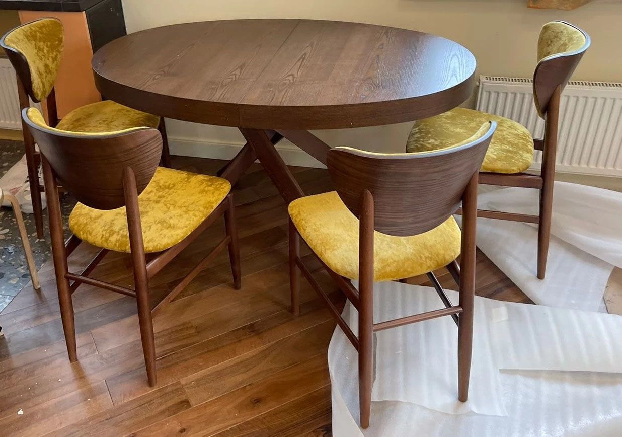 Внутреннее наполнение: Столы типа «Слайдер» не требуют использование механизмов раздвижения. В этом столе для раздвижения используются направляющие пазы в продольных царгах, в которых скользят ролики, установленные на рамках столешницы и вкладыша.