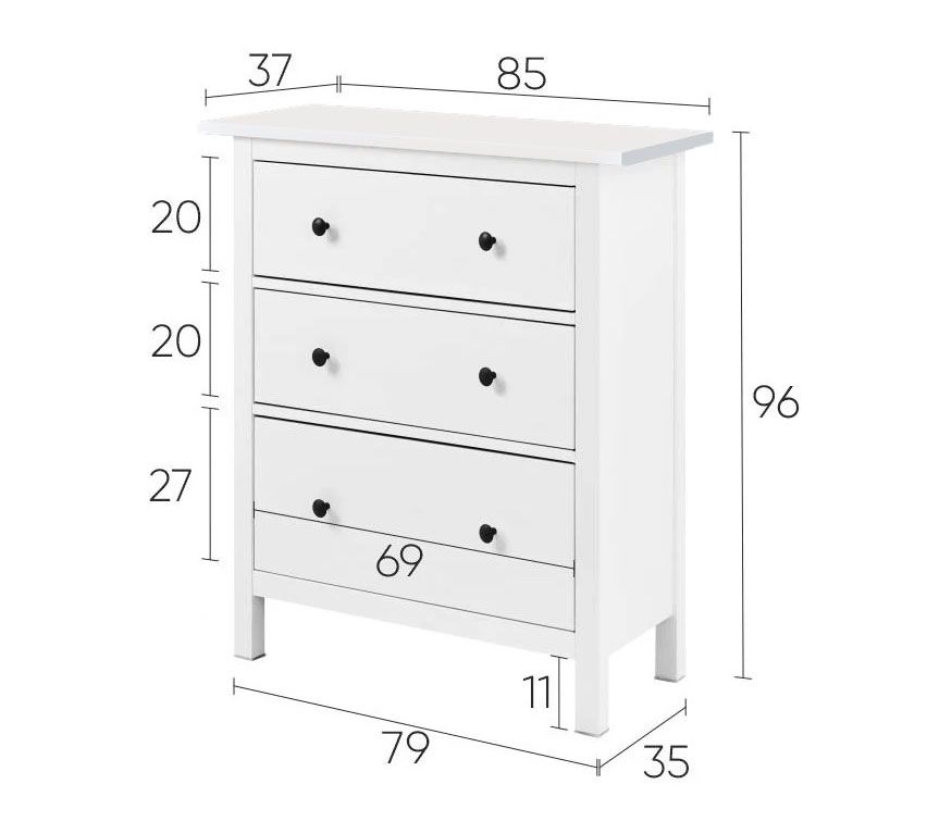 Особенности: Задняя стенка комода из ламинированного ДВП. Дно ящиков в полосатом стиле из ламинированного ДВП.