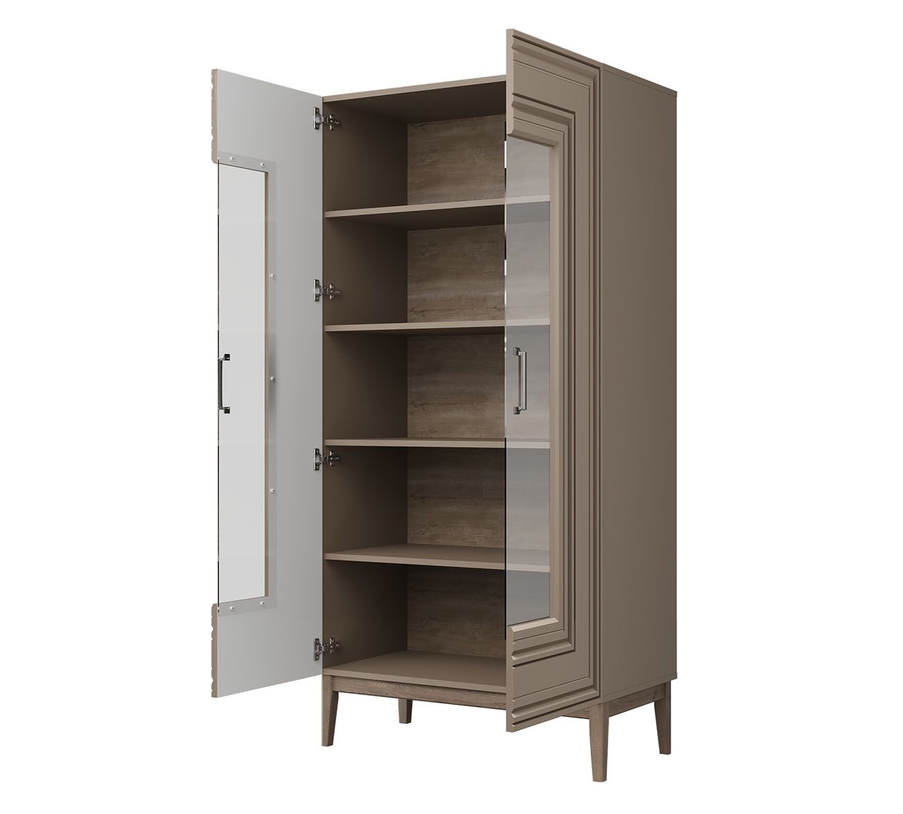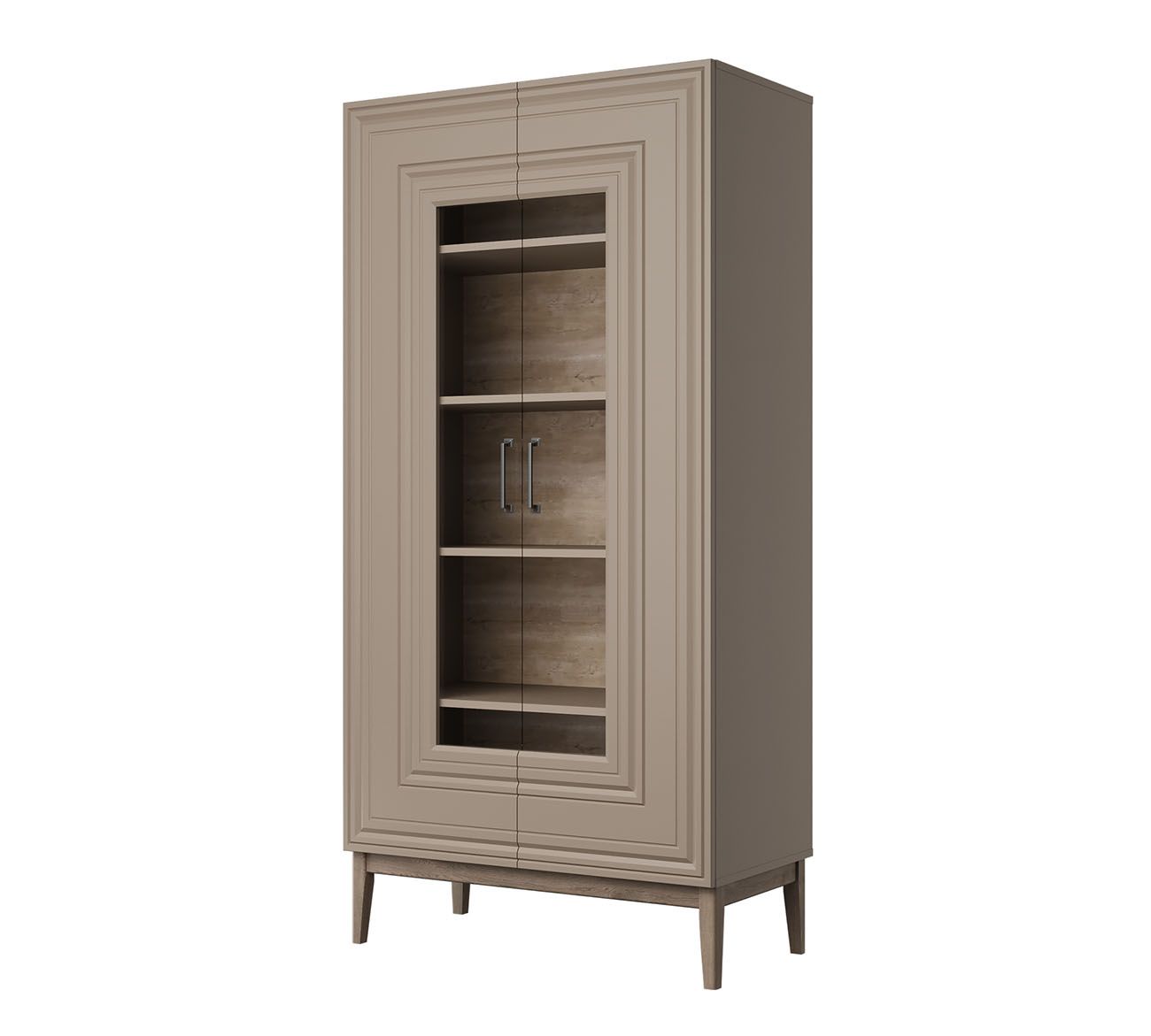 Шкаф-витрина Гориция шириной 890 мм и высотой 1800 мм — изящное решение для гостиных от 10 м² и столовых от 9 м². Размещайте вдоль стены для демонстрации коллекций посуды, книг и декора, оставляя минимум 60 см перед дверцами. Застекленные фасады защищают содержимое от пыли, создавая эффект галерейной экспозиции. Глубина 459 мм вмещает сервизы и декоративные предметы без визуальной перегрузки.