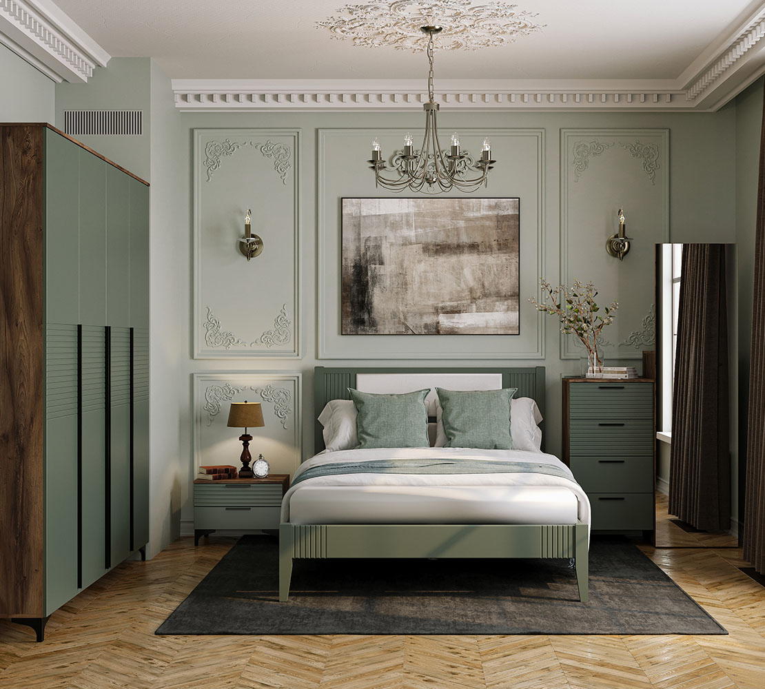 Материал: фасад - МДФ (белый/оливковый), корпус - ЛДСП (белый/таксус)