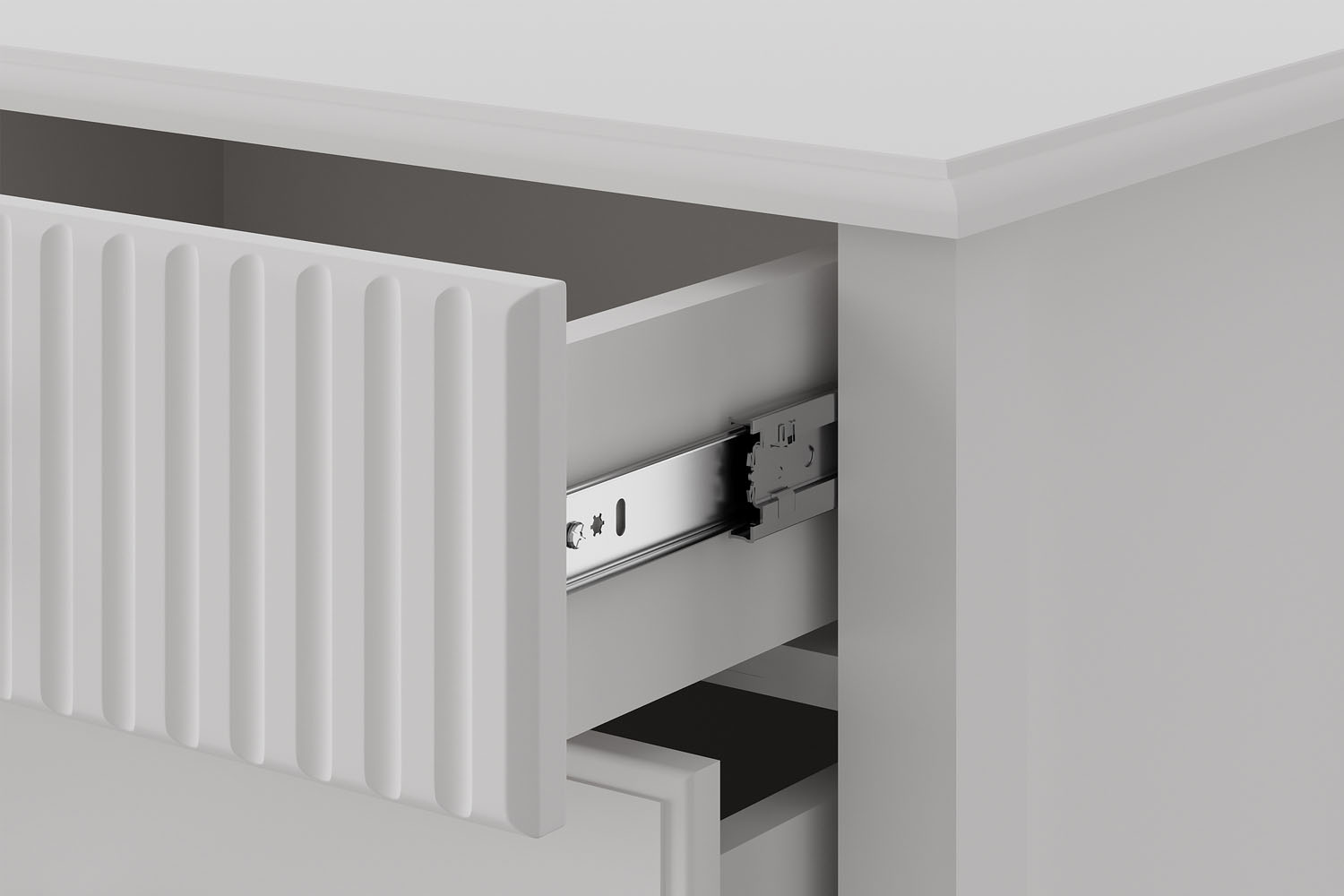 Материал: фасад - МДФ (антрацит/белый), корпус - ЛДСП (серый шифер/белый), опоры - массив