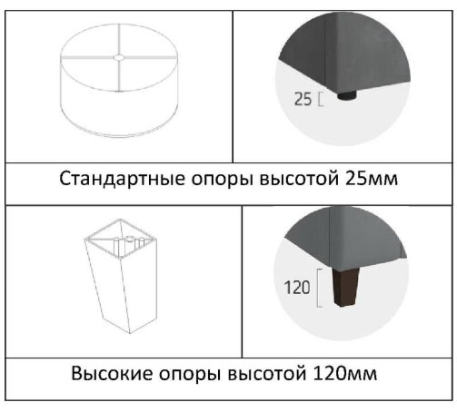 Внутреннее наполнение: Доступна со стандартными или высокими опорами, стоимость с высокими опорами уточняйте у оператора.