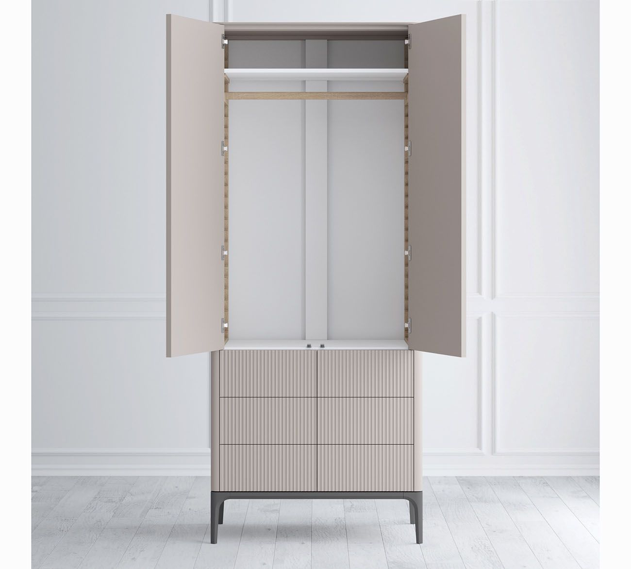 Фурнитура: Двери и ящики имеют систему открывания TIP-ON, открывание дверей и ящиков простым нажатием на фасад.