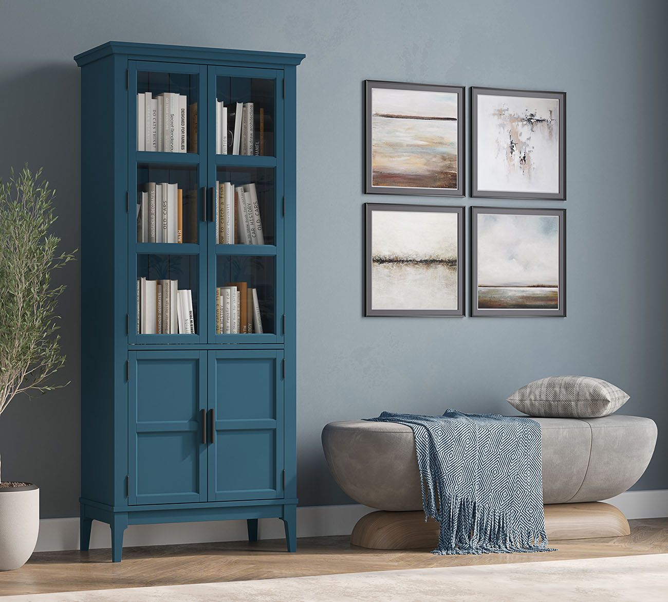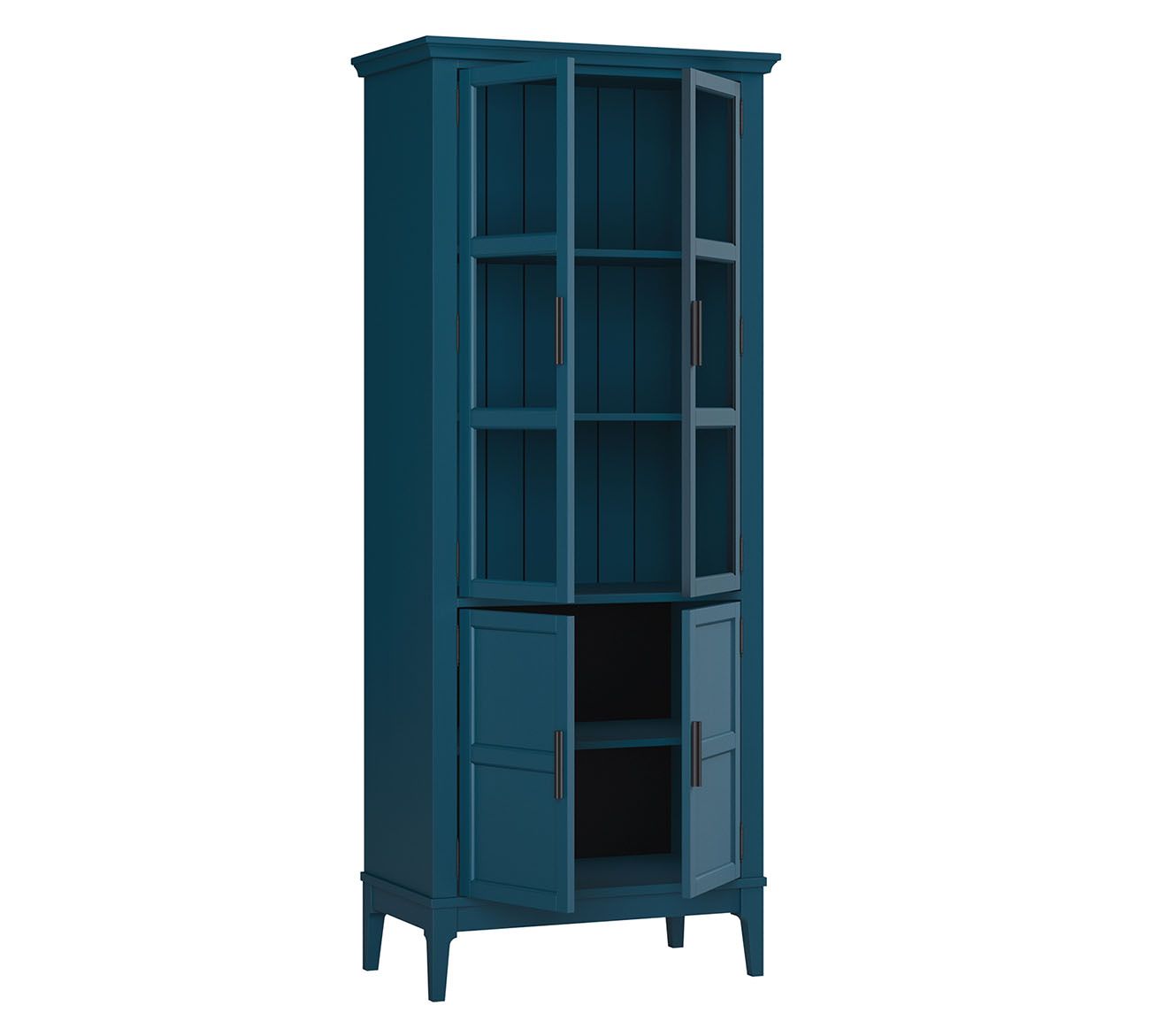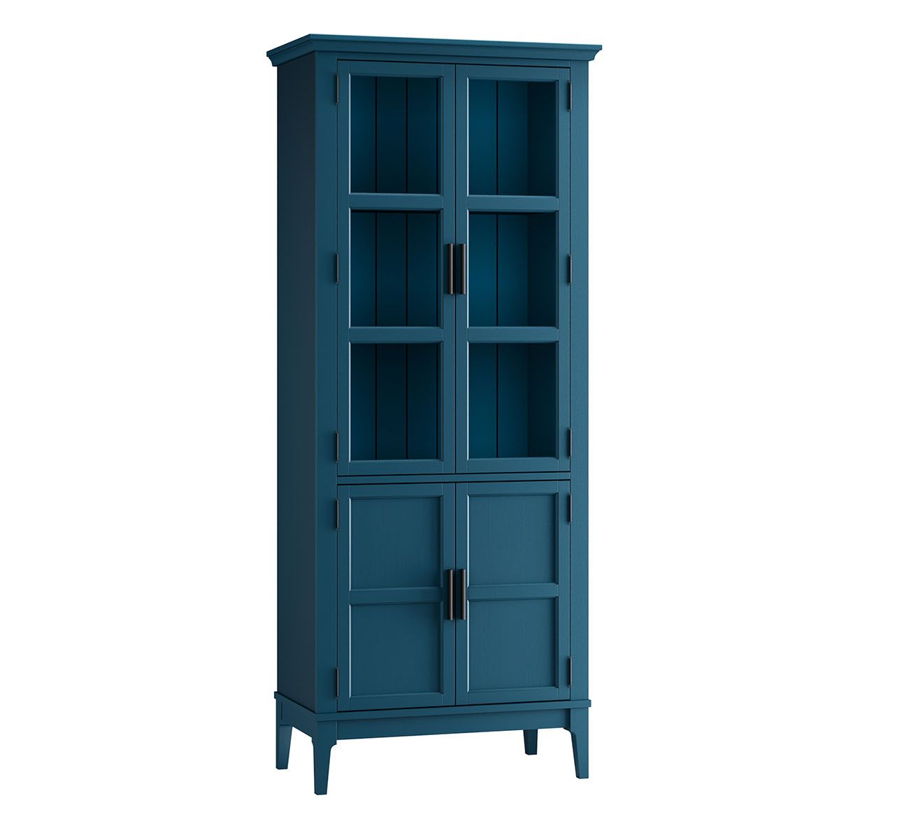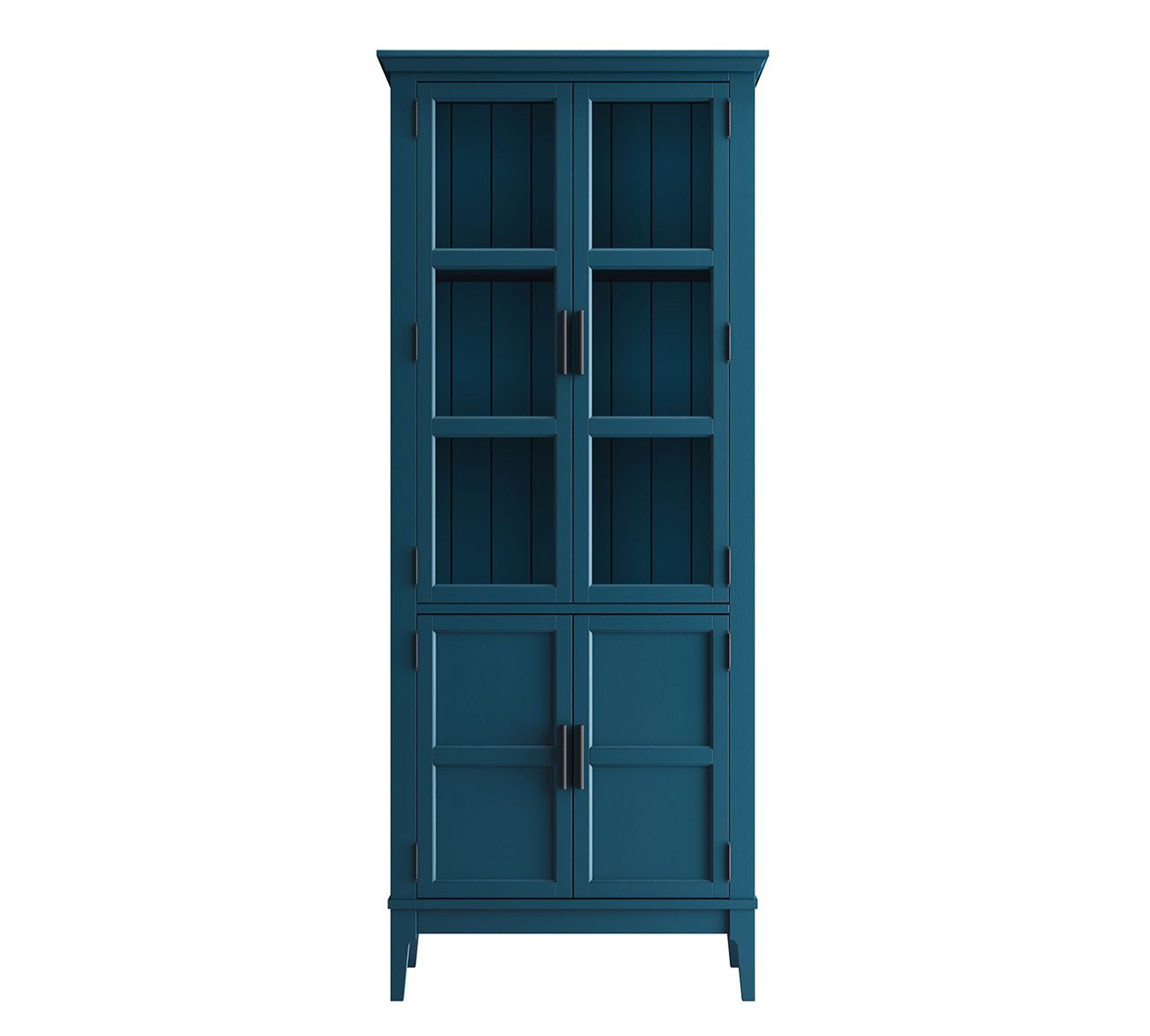 Шкаф для посуды Квадро-С 221-185 представляет собой высокий шкаф с распашными, стеклянными дверями и филенчатыми дверями.