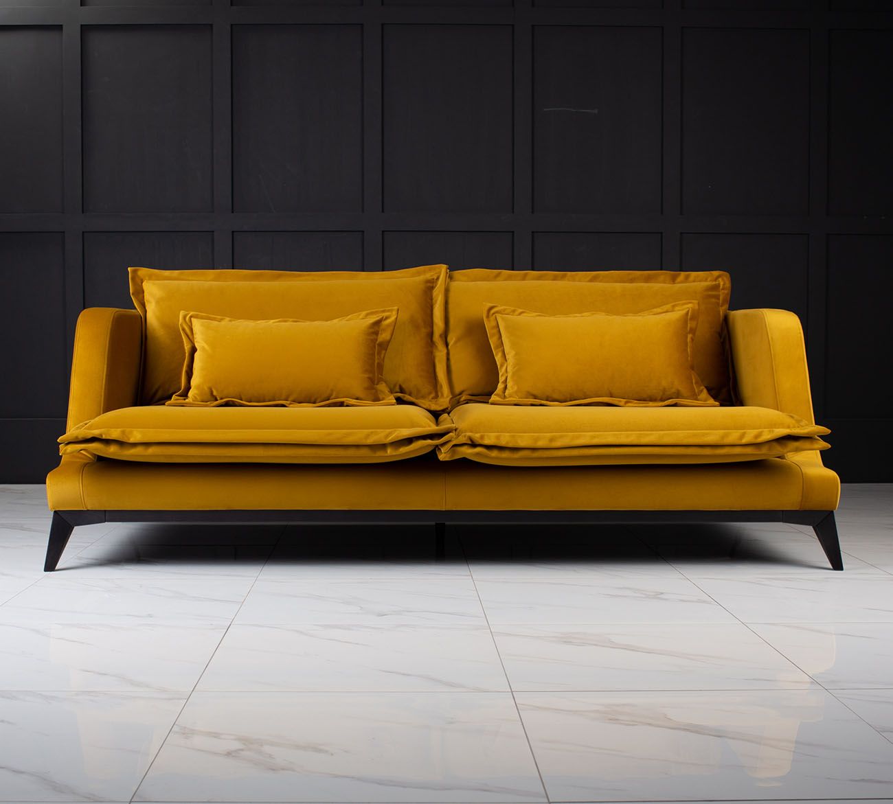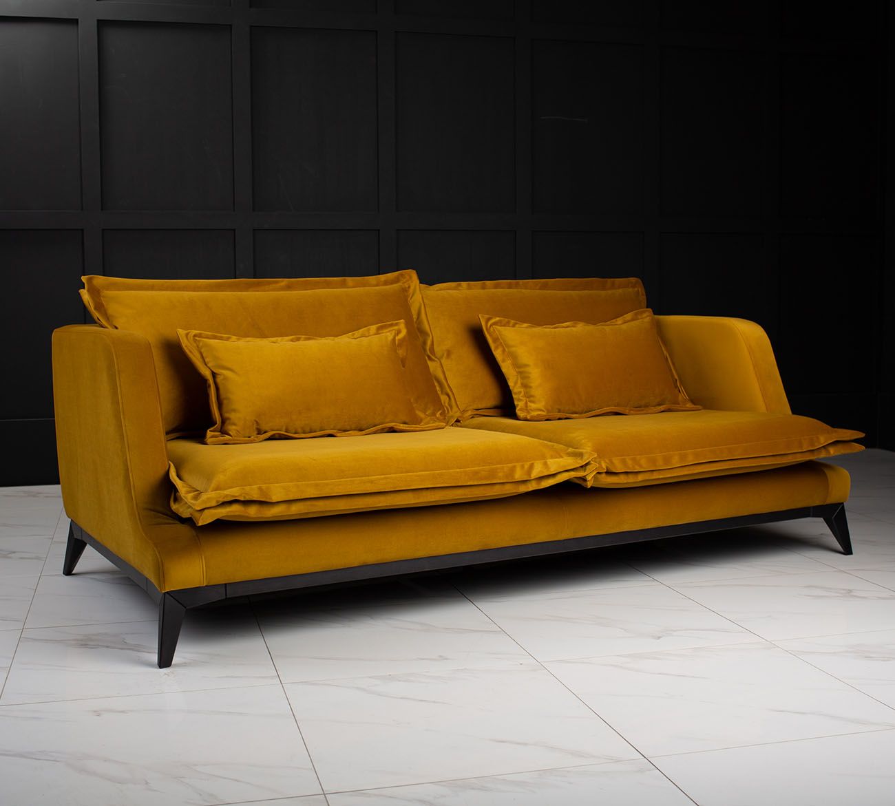Дизайнерский диван DOOMER PREMIUM - идеальное решение для вашего интерьера, предлагая современный стиль и уют. Его прочный каркас из высококачественных материалов и надежные опоры гарантируют долговечность и стабильность. Заполнитель, включающий в себя эластичный пенополиуретан и мягкий лебяжий пух, обеспечивает исключительный комфорт и амортизацию.
