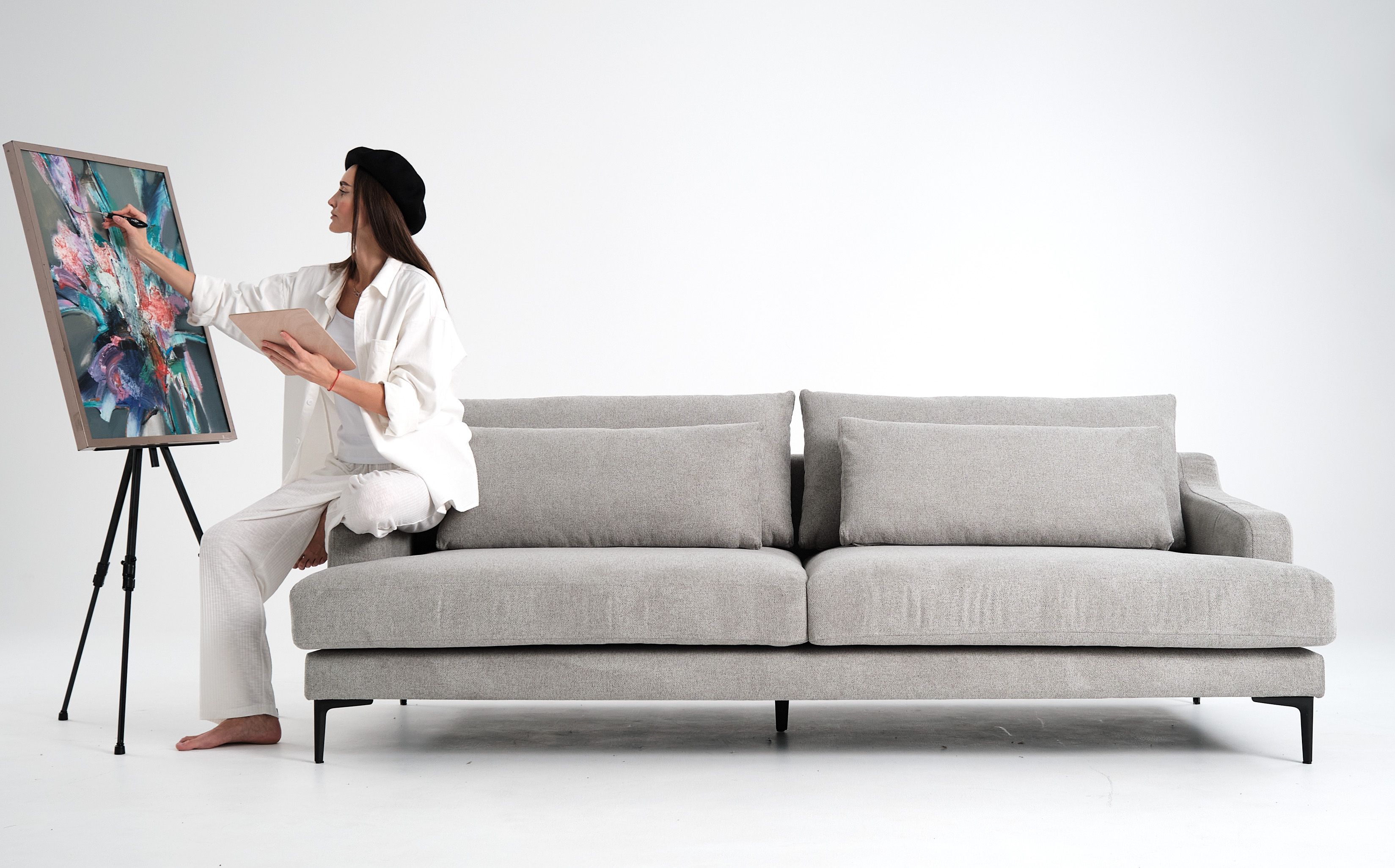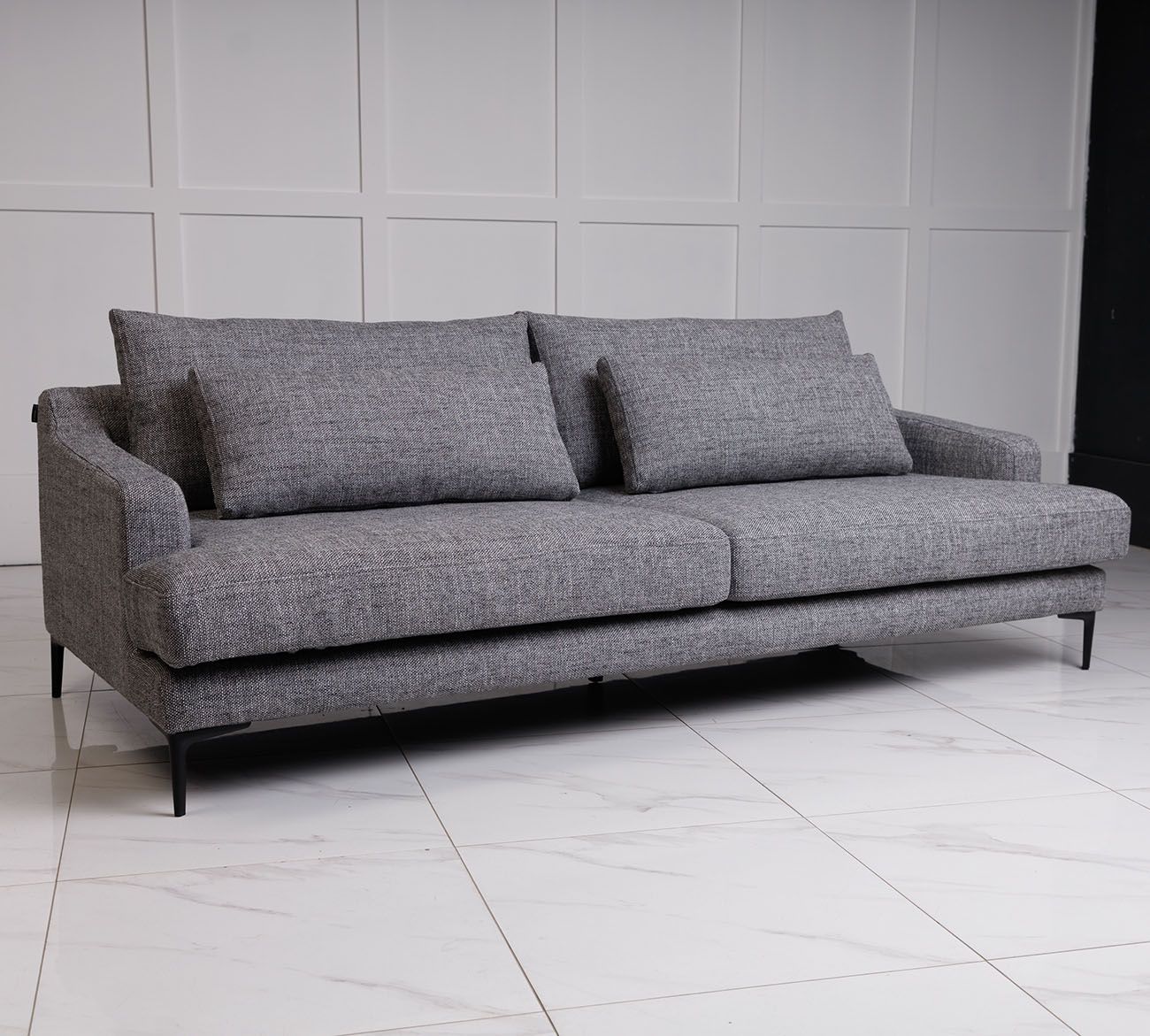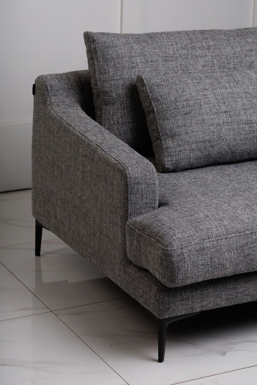 Дизайнерский диван JET - идеальное решение для вашего интерьера. Стильный и комфортабельный, он сочетает в себе изысканный дизайн и современные линии. Каркас из высококачественных материалов гарантирует прочность и долговечность, а опоры из металла делают его особенно устойчивым. Наполнитель из эластичного пенополиуретана и лебяжьего пуха обеспечивает отличную амортизацию и идеальную посадку.