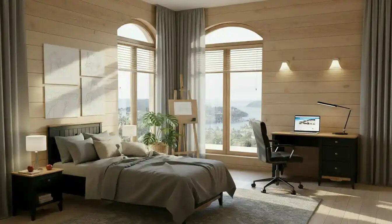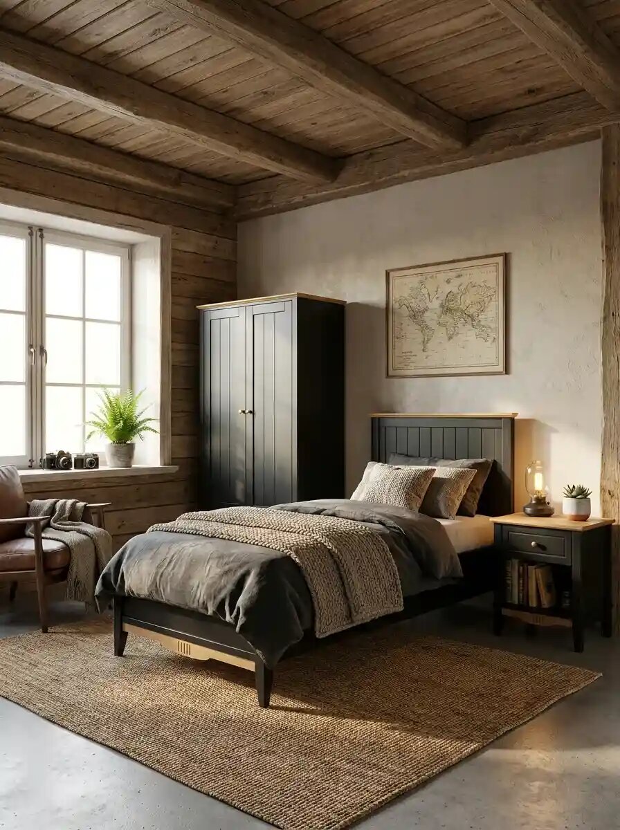 Светлый массив сосны в односпальной кровати работает как теплый акцент в спальнях с нейтральной отделкой — белыми, серыми, бежевыми стенами — визуально облегчая объем и не перегружая компактное пространство. Лаконичное изголовье позволяет интегрировать кровать в любой стиль — от скандинавского до современного. Располагайте так, чтобы естественный свет не падал прямо на спящего, используя плотные шторы для дневного сна. Используйте многоуровневое освещение — потолочный светильник с диммером и ночник для чтения.