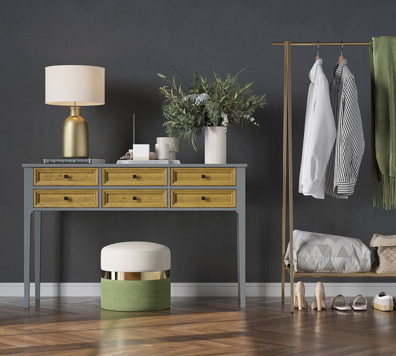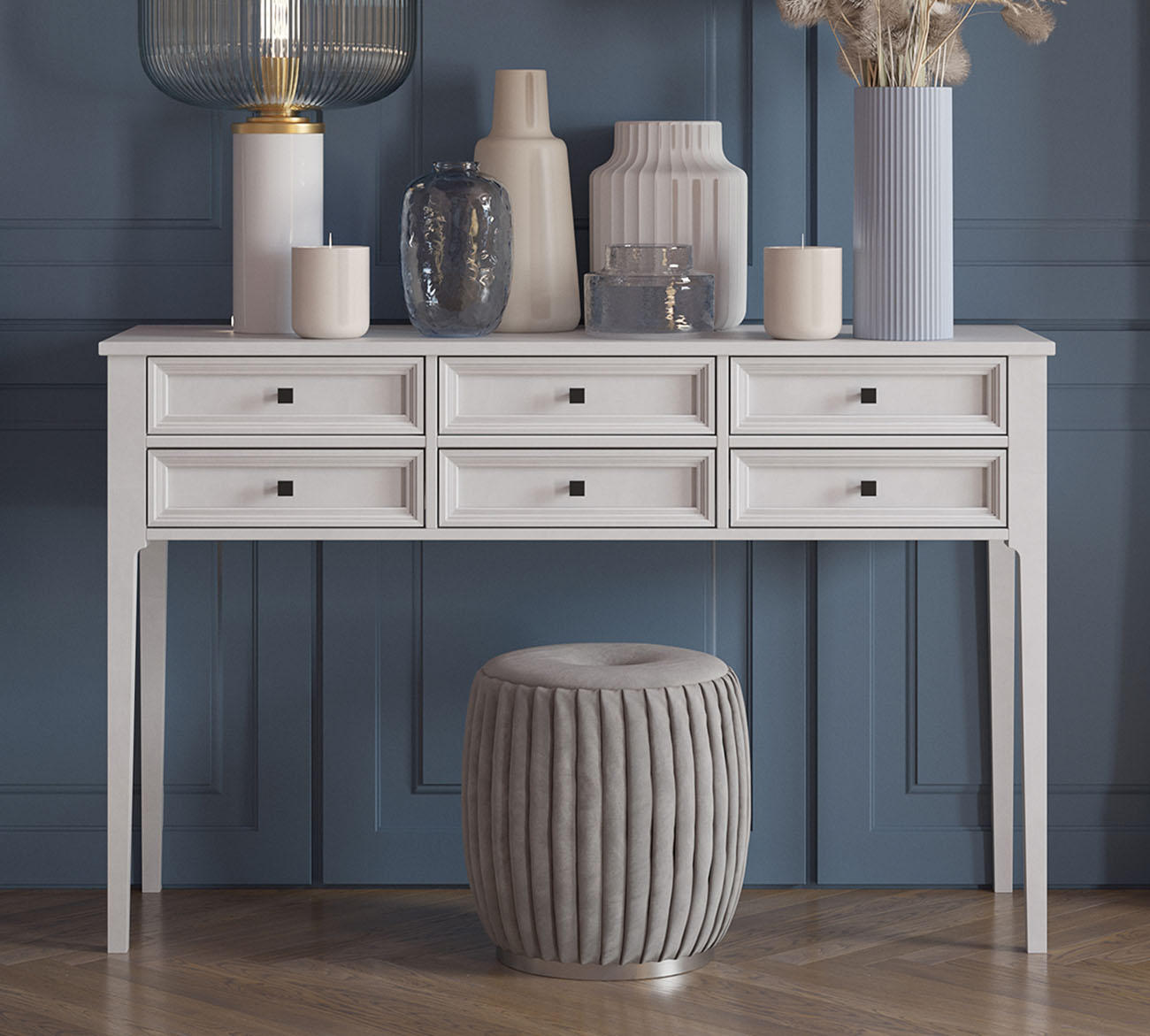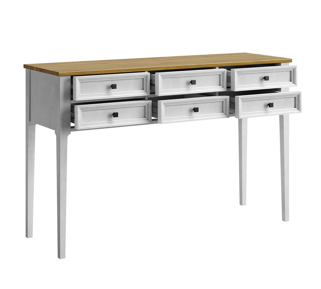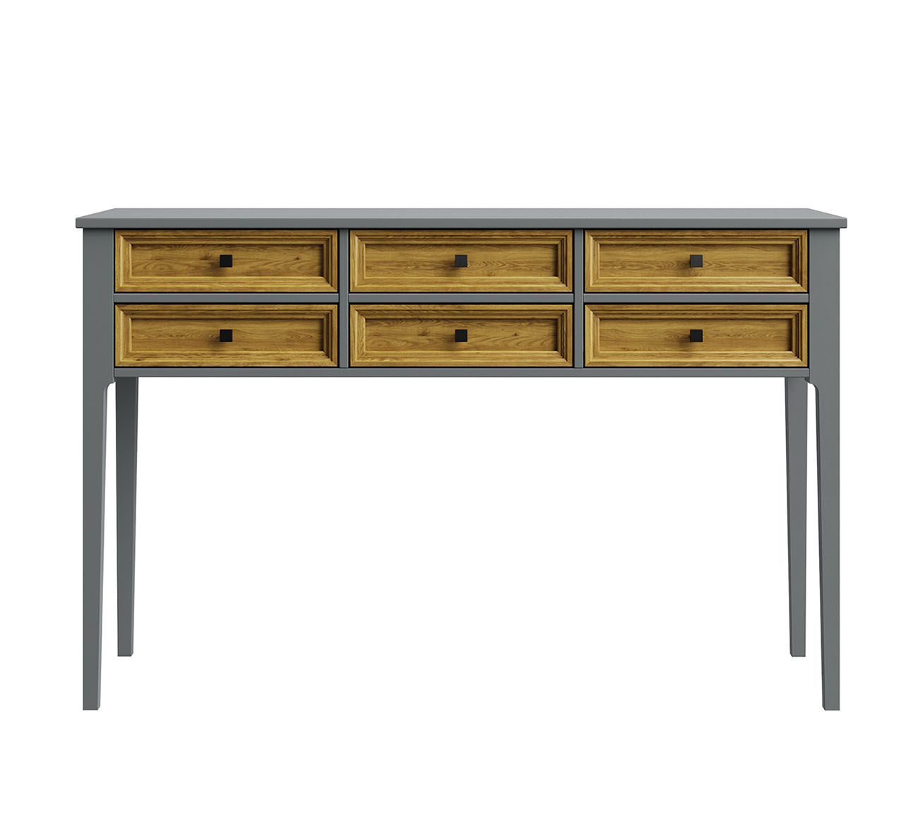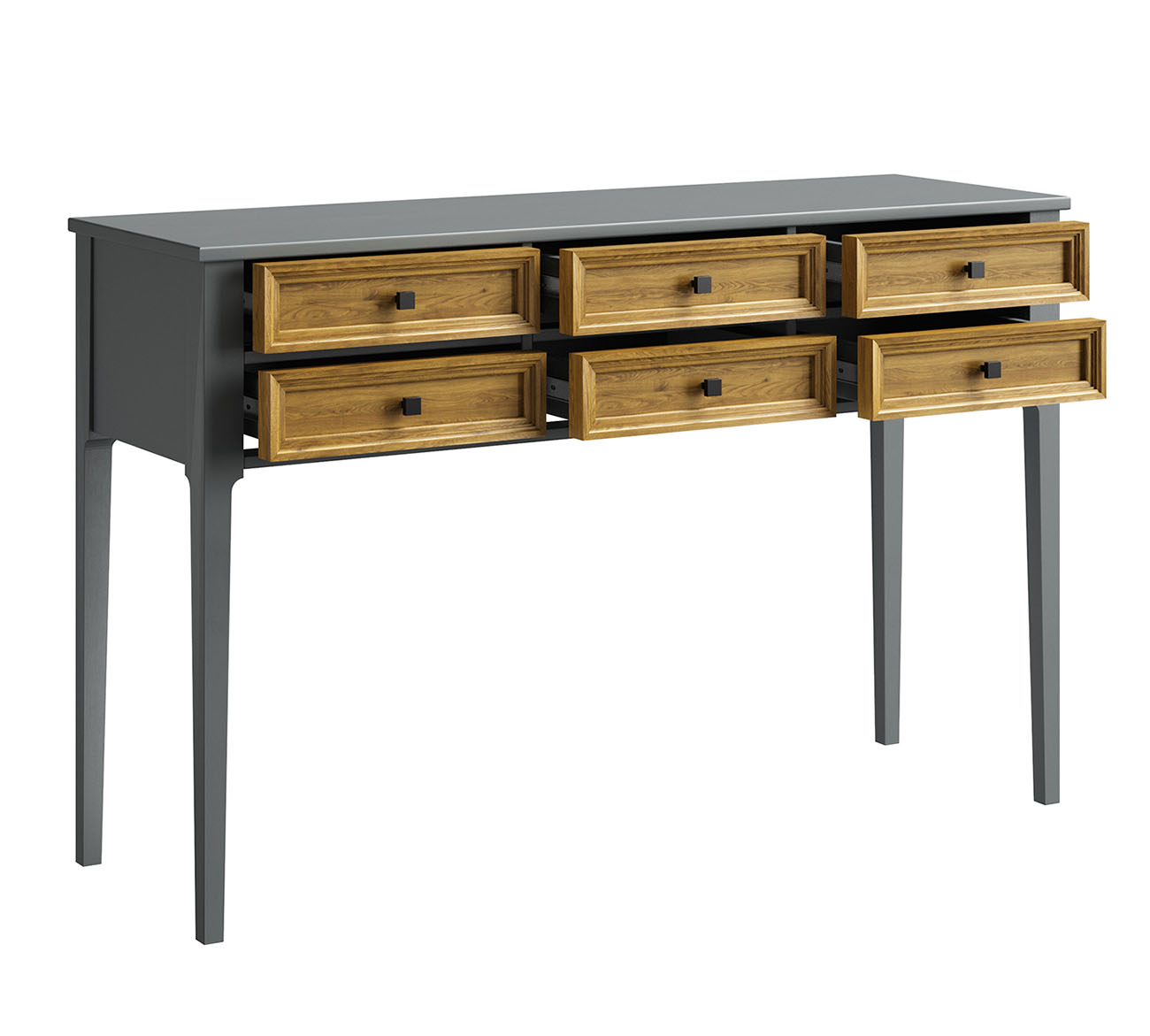 Удобная консоль Квадро-С 06, очень проста и функциональна. Отлично впишется как в кабинет, так и в гостиную комнату. Имеет шесть выдвижных ящиков.
