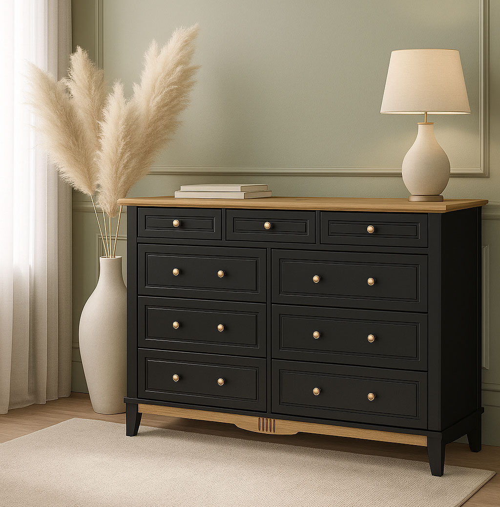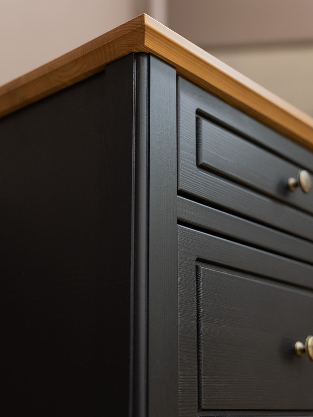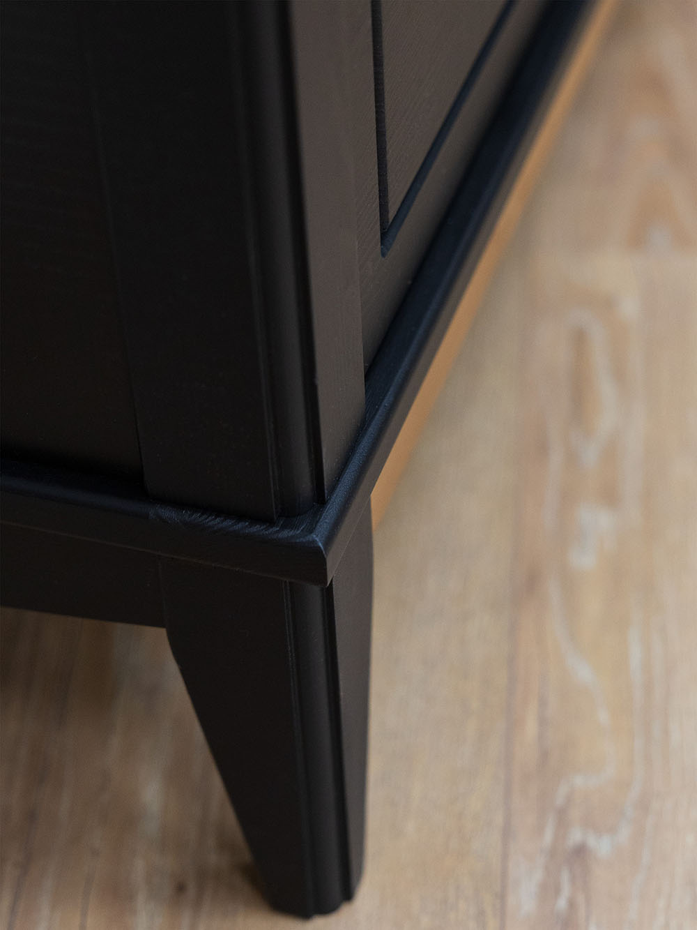 Фурнитура: Петли с доводчиком вкладные. Направляющие скрытого монтажа с доводчиками. Ручка кнопка (состаренное серебро).
